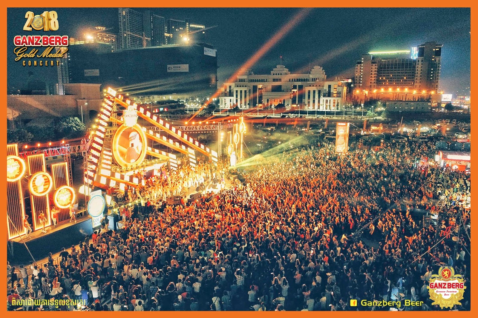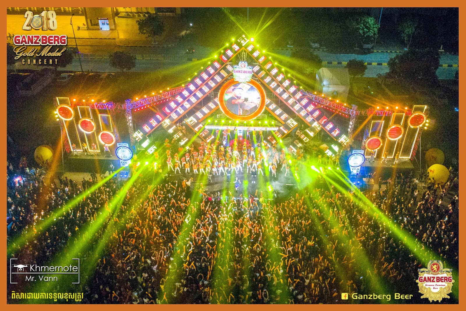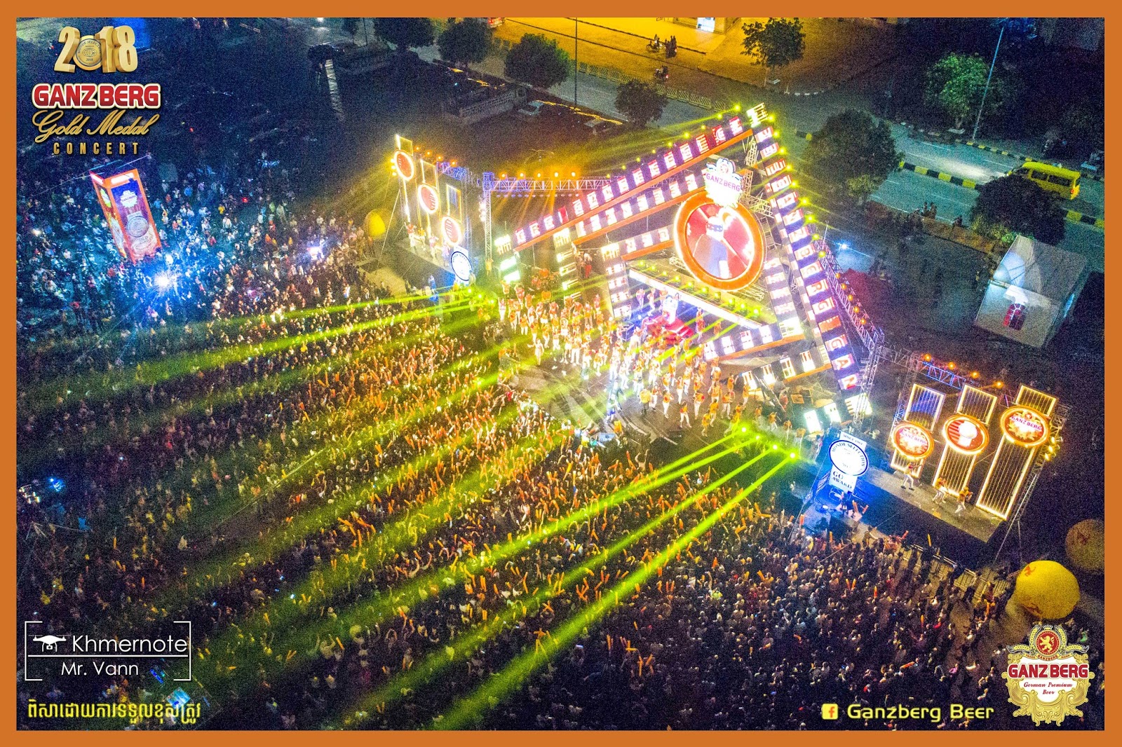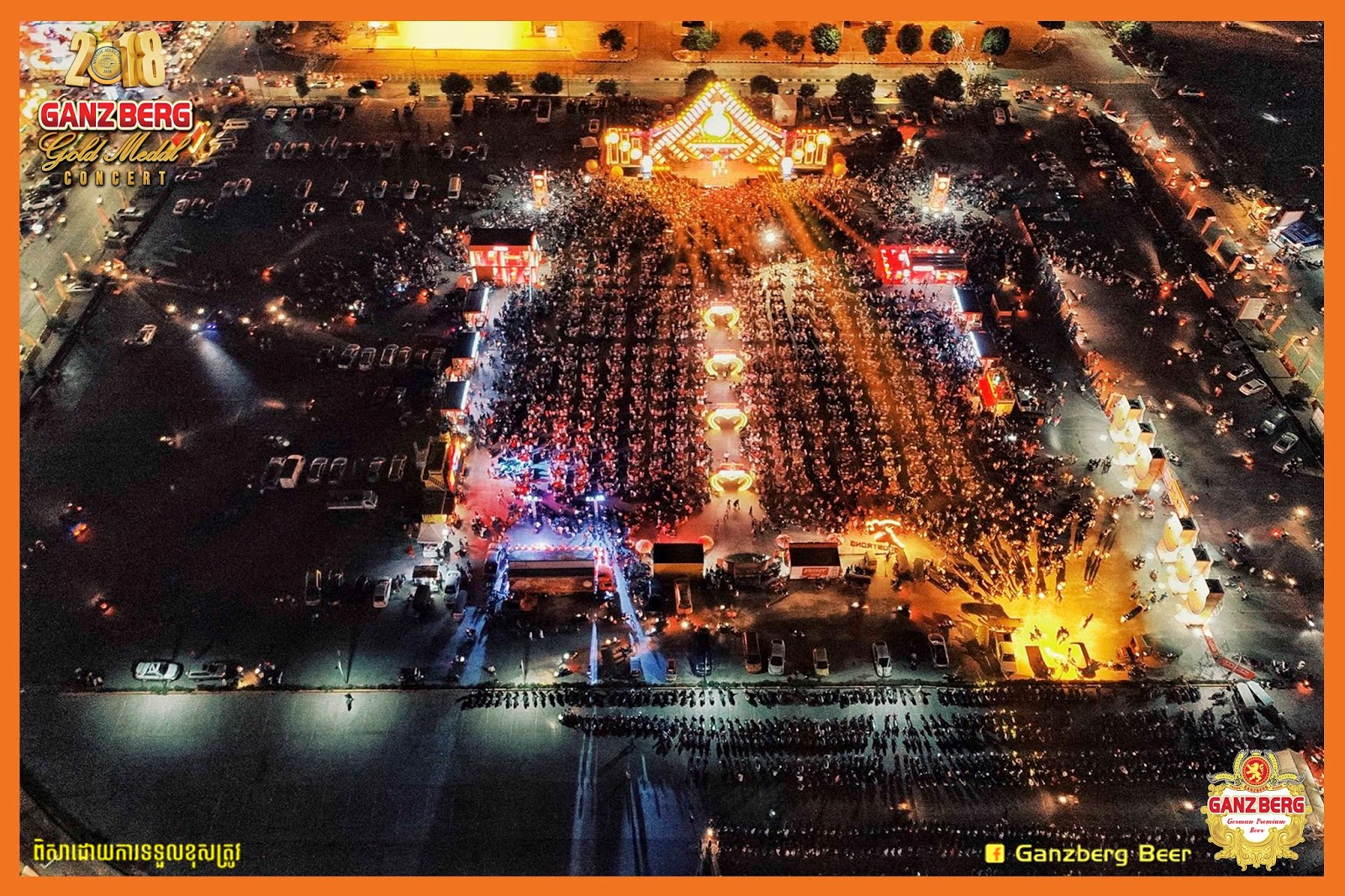 ព្រឹត្តិការណ៍ប្រគុំតន្ត្រីដ៏អស្ចារ្យនារាត្រីយប់ថ្ងៃទី ១២ ខែឧសភា ឆ្នាំ២០១៨ ដែលមានវត្តមានតារាចម្រៀងល្បីៗប្រចាំផលិតកម្មហង្សមាស និង កំពូលតារាចម្រៀងលំដាប់ថ្នាក់ពិភពលោកគឺលោក Matteo ម្ចាស់បទ PANAMA បានបង្កភាពសប្បាយរីករាយយ៉ាងខ្លាំងដល់ទស្សនិកដែលមានមកទស្សនាផ្ទាល់នៅមុខសាលមហោស្រពកោះពេជ្រ។ ទស្សនិកជនយ៉ាងច្រើនកុះករ បានចូលមកទស្សនាព្រឹត្តិការណ៍ប្រគុំតន្ត្រី ដ៏អស្ចារ្យ នេះដោយភាពសប្បាយរីករាយយ៉ាងខ្លាំង ហើយក៏អបអរសាទរចំពោះក្រុមហ៊ុនស្រាបៀរ GANZBERG ដែលបានឈ្នះមេដាយមាសលំដាប់ថ្នាក់ពិភពលោក ពីស្ថាប័នកំពូល MONDE SELECTION រយៈពេល២ឆ្នាំជាប់ៗគ្នា។ ទិដ្ឋភាពដ៏អស្ចារ្យនេះ យើងក៏សូមបង្ហាញប្លង់ពីលើអាកាសចំនួន១០សន្លឹក ដែលបង្ហាញពីភាពសប្បាយរីករាយ កាលពីយប់មិញនេះ ជាមួយវត្តមានតារាចម្រៀងល្បីៗ និងម្ចាស់បទ PANAMA៕