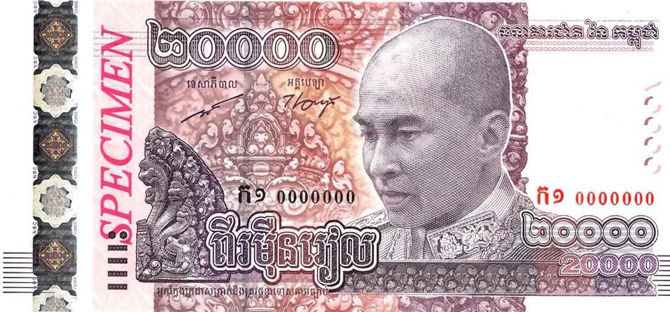 ដើម្បីអបអរសាទរព្រះរាជពិធីបុណ្យចម្រើនព្រះជន្ម ព្រះករុណា ព្រះបាទ សម្តេចព្រះបរមនាថ នរោត្តម សីហមុនី ព្រះមហាក្សត្រនៃព្រះរាជាណាចក្រកម្ពុជា គម្រប់ ៦៥ យាងចូល ៦៦ព្រះវស្សា រាជរដ្ឋាភិបាលបានអនុញ្ញាតឱ្យធនាគារជាតិនៃកម្ពុជា បានបញ្ចេញធនប័ត្រ (ក្រដាសប្រាក់) ប្រភេទ ២០,០០០ រៀល គំរូថ្មី ព្រមទាំងបង្ហាញនូវលក្ខណៈសម្គាល់នៃធនប័ត្រប្រភេទ ២០,០០០ រៀល គំរូថ្មីនេះ។