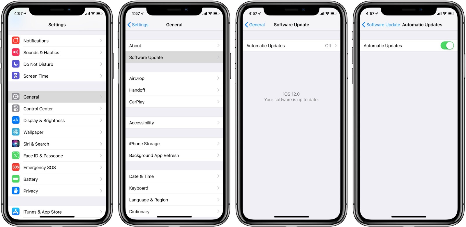 ដើម្បីជាការល្អរាល់ iPhone, iPad និង iPad Touch ទាំងអស់គួរតែទទួលបានប្រព័ន្ធដំណើរការជំនាន់ចុងក្រោយគេបង្អស់ ហើយដើម្បីការពារកុំឲ្យខកខានការអភិវឌ្ឍ នោះអ្នកប្រើប្រាស់ទាំងអស់គួរបើកមុខងារ Automatic Updates សម្រាប់ជួយទាញយក iOS ថ្មីដោយស្វ័យប្រវត្តិបើទោះយើងមិនបានបញ្ជាក៏ដោយ។