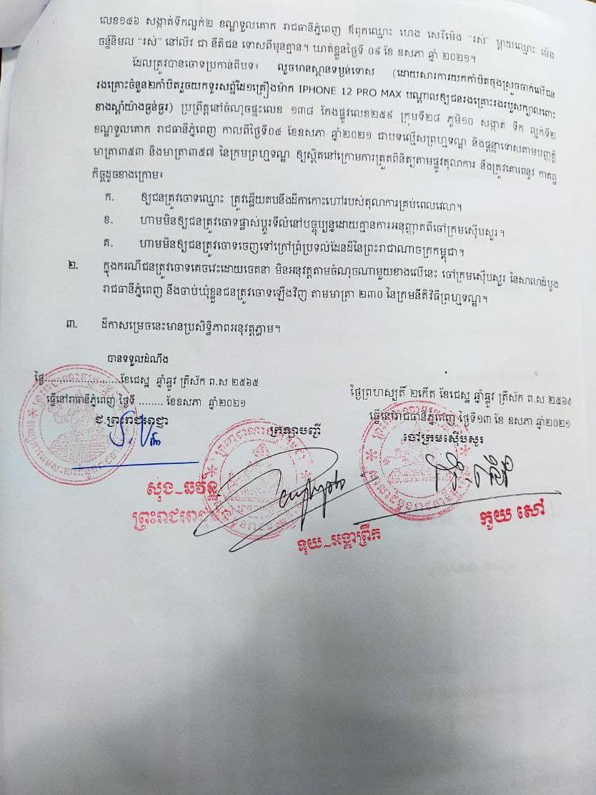រាជធានីភ្នំពេញ៖ នៅថ្ងៃទី១៣ ខែឧសភា ឆ្នាំ២០២១នេះ ចៅក្រមស៊ើបសួររាជធានីភ្នំពេញ បានសម្រេចធ្វើការដោះលែងកញ្ញា មាន ពេជ្ររីតា ហៅយូប៊ី អាយុ២០ឆ្នាំ ជាពិធីការិនីទូរទស្សន៍ MYTV និងជាអតីតបេក្ខនារី Miss Grand Cambodia ឲ្យនៅក្រៅឃុំបណ្តោះអាសន្នហើយ។