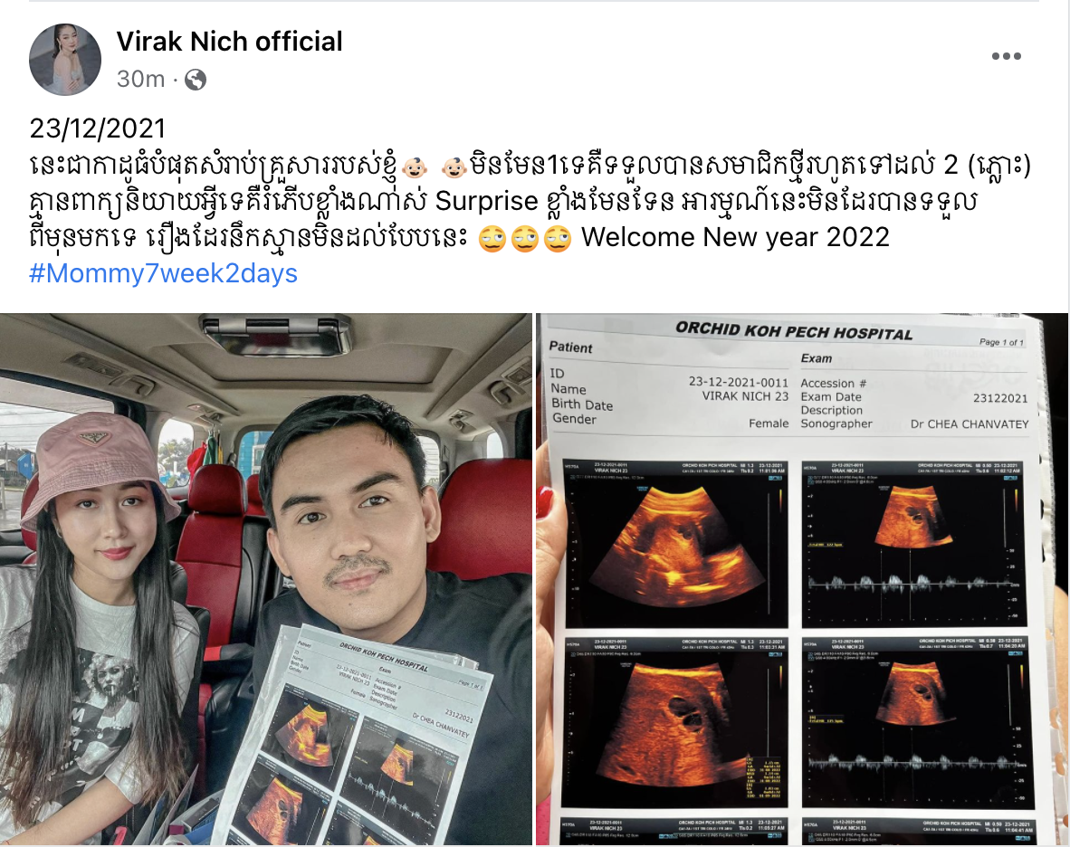 តារាចម្រៀង វីរៈ និច្ច បង្ហាញអារម្មណ៍រំភើបខ្លាំងពេលដឹងថាខ្លួនពរពោះបានកូនភ្លោះ
