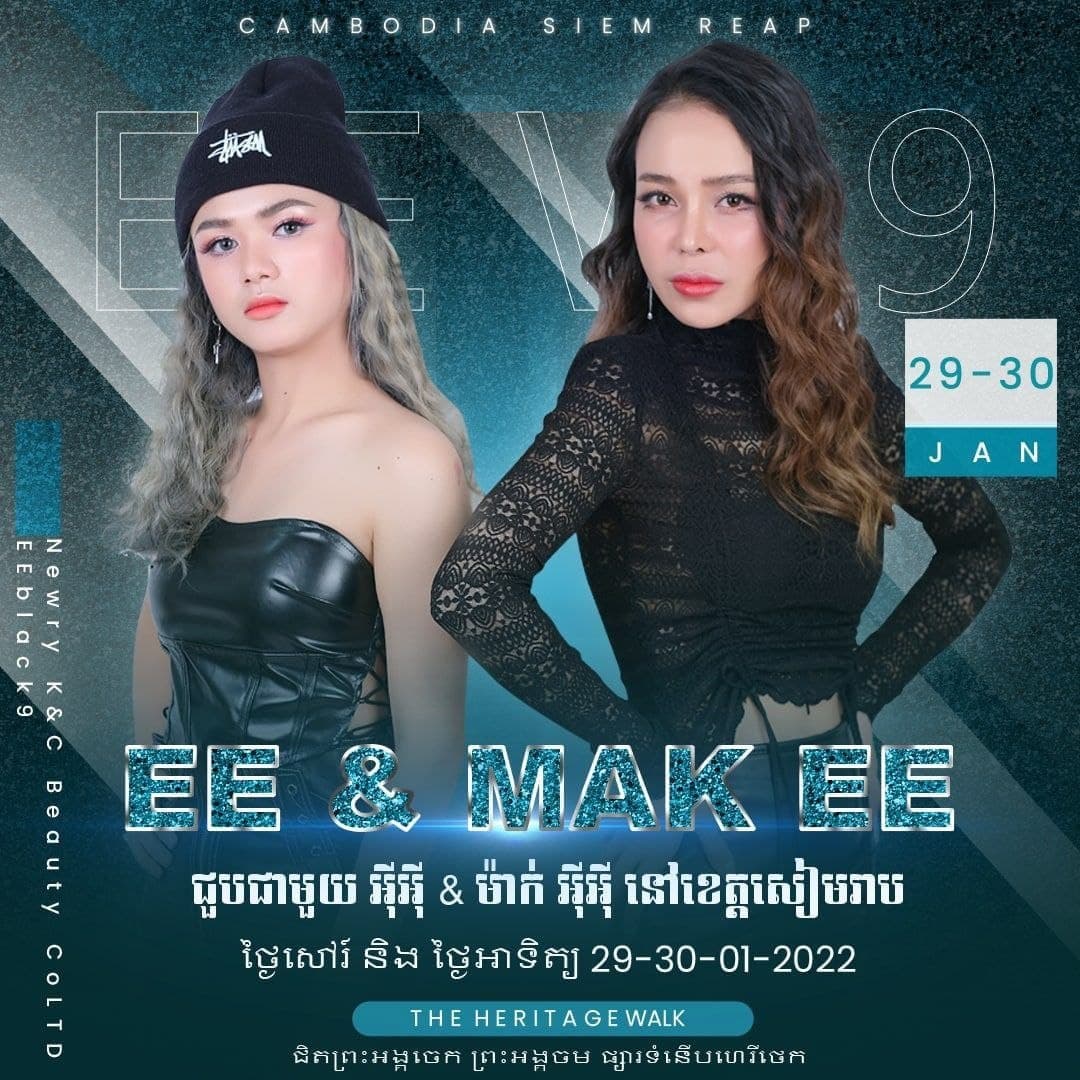 (ភ្នំពេញ)៖ តារាកូនកាត់ខ្មែរ-កូរ៉េវ័យ ១៨ឆ្នាំ ស្រីស្អាត EE ដែលកំពុងត្រូវបានវិស័យ K-POP ដ៏ល្បីរបស់ប្រទេសកូរ៉េចាប់អារម្មណ៍លើរូបនាង និងត្រៀមបើកផ្លូវឲ្យតារាកូនកាត់រូបនេះ ដើរចូលក្នុងវិស័យមួយនេះ នឹងបង្ហាញក្បាច់រាំ ក្នុងពិធីតាំងពិព័រណ៍ផលិតផលកូរ៉េសុទ្ធ នៅខេត្តសៀមរាបស្អែកនេះ។ ជាមួយគ្នានេះម្ចាស់ប្រេន «EEw9» ដែលជាផលិតផលមកពីប្រទេសកូរ៉េ កញ្ញា EE និងម៉ាក់របស់នាង នឹងចូលរួមក្នុងកម្មវិធីតាំងពិព័រណ៍ ផលិតផលមកពីប្រទេសកូរ៉េនៅថ្ងៃទី២៩ និងថ្ងៃទី៣០ ខែមករា ឆ្នាំ២០២២នេះ នៅផ្សារទំនើប «ហេរីថេក» ក្រុងសៀមរាប ខេត្តសៀមរាប ចាប់ពីម៉ោង១១៖៣០នាទីថ្ងៃត្រង់ ដល់ម៉ោង៨៖០០នាទីយប់។