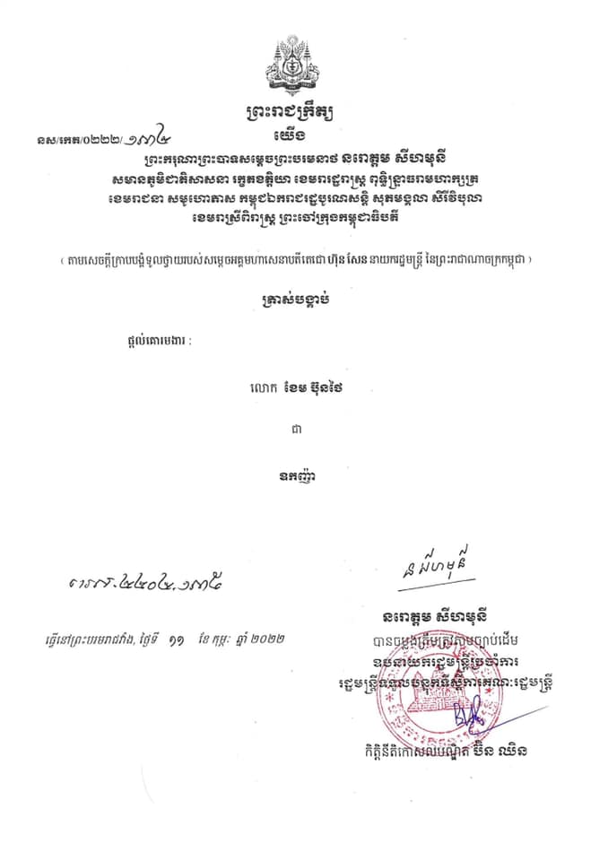 កំពូលតារាចម្រៀង ខេមរៈ សិរីមន្ត ត្រូវបានព្រះមហាក្សត្រ ត្រាស់បង្គាប់ផ្តល់គោរមងារជា “ឧកញ៉ា”