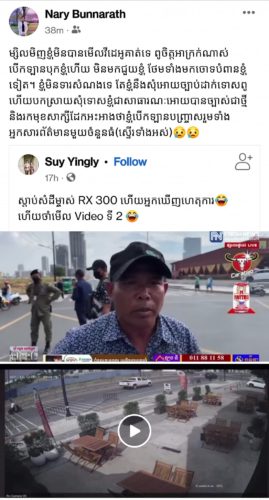 ការចោទប្រកាន់របស់ម្ចាស់រថយន្ត RX300 និងសាក្សីមួយរូបនោះ ត្រូវបានអ្នកលេងបណ្តាញសង្គម រិះគន់យ៉ាងខ្លាំងក្រោយបានឃើញវិដេអូចេញពីកាមេរ៉ា សុវត្ថិភាព ដោយរថយន្ត LEXUS 570 មិនបានបើកបរបញ្ច្រាស់ផ្លូវនោះទេ។ ទោះជាយ៉ាងណាក្តីម្ចាស់គណនី Facebook ឈ្មោះថា Nary Bunnarath អះអាងខ្លួនថាជាម្ចាស់រថយន្ត Lexus 570 បានចេញមុខមកបញ្ជាក់ថាខ្លួនមិនទាមទារសំណងពីម្ចាស់រថយន្ត RX300 ឡើយតែទុកអោយច្បាប់ជាអ្នកចាត់ការ ហើយប្រកាសអោយម្ចាស់រថយន្ត RX300 និងសាក្សីរូបនោះចេញមុខសុំទោសរូបគាត់ជាសាធារណៈ៕