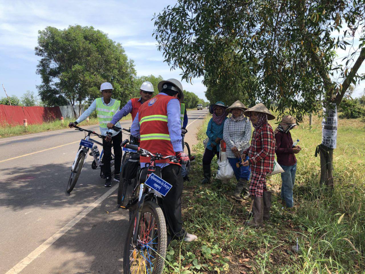 ៣. បិតចំណាំងផ្លាតតាមបង្គោលសុវត្ថិភាពតាមផ្លូវកោង និងគោយន្តម៉ាស៊ីនបោកស្រូវរបស់ប្រជាកសិករ។