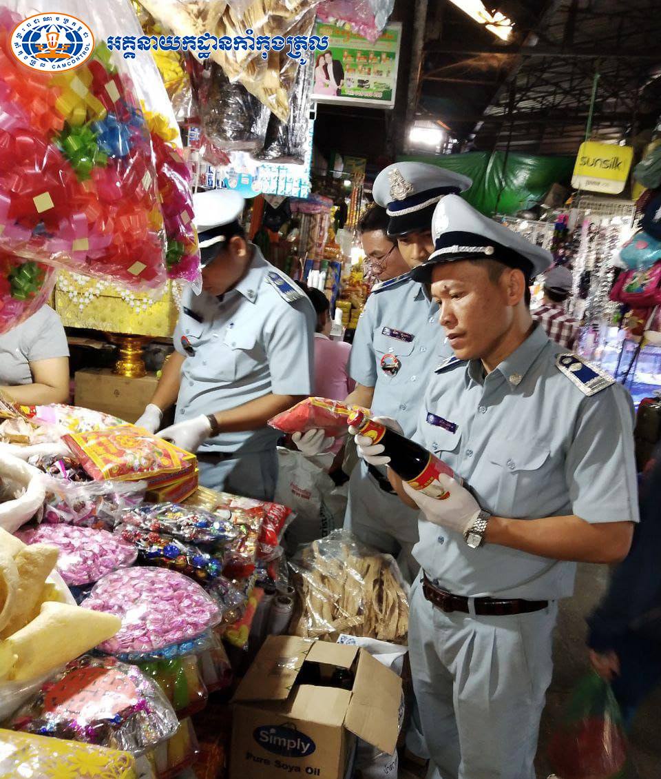 រាជធានីភ្នំពេញ៖ នៅថ្ងៃទី៨ ខែវិច្ឆិកា ឆ្នាំ២០១៨ មន្រ្តីសាខាកាំកុងត្រូលផែស្ងួតចុងទីភ្នំពេញ សាខាកាំកុងត្រូលអាកាសយានដ្ឋានអន្តរជាតិភ្នំពេញ សាខាកាំកុងត្រូលកំពង់ផែអន្តរជាតិភ្នំពេញ សាខាកាំកុងត្រូលតំបន់សេដ្ឋកិច្ចពិសេសភ្នំពេញ និងសាខាកាំកុងត្រូលតំបន់សេដ្ឋកិច្ចពិសេស Kerry World Bridge Logistic ដោយទទួលបានការចូលរួមសហការពីមន្ត្រីនាយកដ្ឋានមន្ទីពិសោធន៍ មន្រ្តីមន្ទីរពាណិជ្ជកម្ម និងគណៈកម្មការផ្សារ បានចុះត្រួតពិនិត្យ ស្រាវជ្រាវ ទប់ស្កាត់នូវទំនិញខូចគុណភាព គ្មានស្លាកសញ្ញា គ្មានកាលបរិច្ឆេទ សំបកវេចខ្ចប់មិនត្រឹមត្រូវ និងរកសារធាតុគីមីហាមឃាត់នៅក្នុងទំនិញមួយចំនួន ដែលជនខិលខូចមួយចំនួនលួច បញ្ចេញមកលក់ ចែកចាយ លើទីផ្សារ ដូចជា ផ្សារច្បារអំពៅ ផ្សារសិនជូរីផ្លាស្សា ផ្សារអូរឡាំពិក ផ្សារអូរឬស្សី ផ្សារដើមគរ ផ្សារស្ទឹងមានជ័យ ផ្សារធំថ្មី ផ្សារជម្ពូវ័ន និងផ្សារទួលទំពូង។