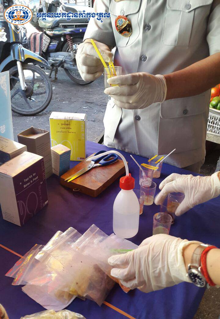 ដើម្បីទប់ស្កាត់នូវបញ្ហាទាំងនេះ មន្ត្រីកាំកុងត្រូលបានធ្វើតេស្តបឋមទៅលើទំនិញមួយចំនួន ដូចជា៖ ឈាមជ្រូក, លត, ផ្អកពងត្រី, សណ្តែកបណ្តុះ, តៅហ៊ូដុំ, គ្រឿងសមុទ្រ គុយទាវសរសៃតូច, បាញ់កាញ់, មីគ្រប់មុខ, ទឹកខ្មេះគ្រប់ប្រភេទ, ប្រហិតគ្រប់មុខ ជ្រក់គ្រប់មុខ សាច់ក្រក ត្រីងៀតគ្រប់មុខ ដើម្បីរកសារធាតុគីមីហាមឃាត់ដែលអាចធ្វើឱ្យប៉ះពាល់ដល់សុខភាពប្រជាពលរដ្ឋ។