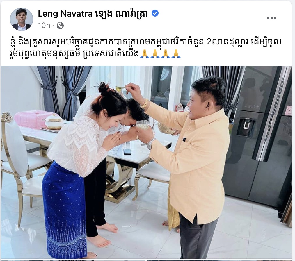 អ្នកឧកញ៉ា ឡេង ណាវ៉ាត្រា ប្រកាសបរិច្ចាគថវិកា ២លានដុល្លារជូនកាកបាទក្រហមកម្ពុជា