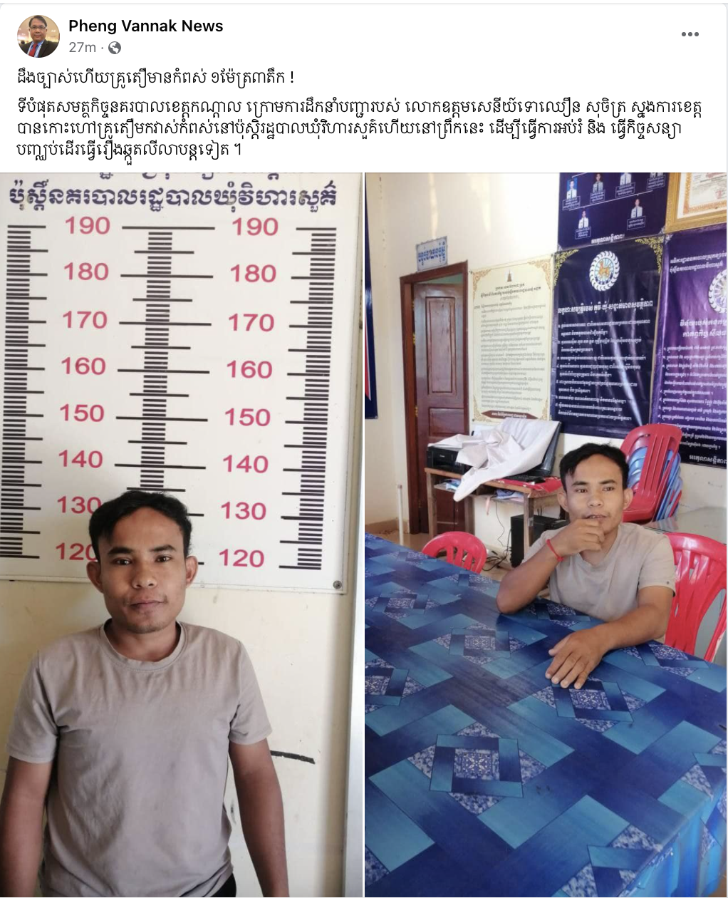 បើតាមការបង្ហោះអោយដឹងនៅលើទំព័រ Facebook លោក ផែង វណ្ណៈ បានបញ្ជាក់ថា៖ “ដឹងច្បាស់ហើយគ្រូតឿមានកំពស់ ១ម៉ែត្រ៣តឹក ! ទីបំផុតសមត្ថកិច្ចនគរបាលខេត្តកណ្ដាល ក្រោមការដឹកនាំបញ្ជារបស់ លោកឧត្ដមសេនីយ៍ទោឈឿន សុចិត្រ ស្នងការខេត្តបានកោះហៅគ្រូតឿមកវាស់កំពស់នៅប៉ុស្តិរដ្ឋបាលឃុំវិហារសួគ៌ហេីយនៅព្រឹកនេះ ដើម្បីធ្វើការអប់រំ និង ធ្វើកិច្ចសន្យាបញ្ឈប់ដេីរធ្វេីរឿងឆ្កួតលីលាបន្តទៀត ។”