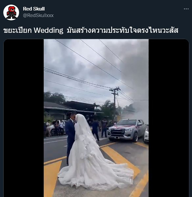 ក្លាយជាប្រធានបទដ៏ល្បីមួយនៅក្នុងពិភពអនឡាញម្តងទៀត បន្ទាប់ពីគណនី Twitter @RedSkullxxx ដែលបានបង្ហោះវីដេអូឃ្លីប បង្ហាញពីទិដ្ឋភាព Pre-Wedding របស់កូនកំលោះ និងកូនក្រមុំមួយគូ ដែលថតរូបនៅកណ្តាលផ្លូវធំ ហើយក្នុង​ឃ្លីប​នោះដែរ ផ្លូវនោះក៏​ត្រូវ​បានបិទ​ដើម្បី​មិនឲ្យ​រថយន្ត​ផ្សេងធ្វើ​ដំណើរ​ឆ្លងកាត់។ ជាមួយគ្នានេះដែរ ពួកគេក៏យក​រថយន្ត​ភីកអាប់​ជា​ច្រើន​គ្រឿង​មក​ចត​កណ្តាល​ផ្លូវ រួមជាមួយនឹងការបង្កើតបរិយាកាសជុំវិញដោយបញ្ឆេះឡានរោទិ៍ទ្វេដង ដើម្បីបង្កើតផ្សែងចេញមកដែលមើលទៅហាក់ដូចជា ប្រើទឹកកកស្ងួត (Dry Ice) ឬម៉ាស៊ីនផ្សែង ដើម្បីបង្កើតរូបភាពដូចទៅនឹងដុំពពក។