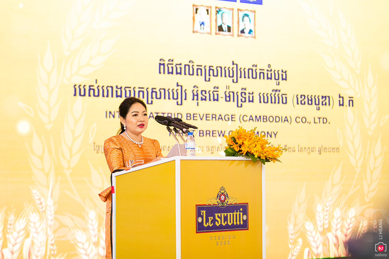 ក្នុងកិច្ចថ្លែងស្វាគមន៍ក្នុងពិធីដ៏មានអត្ថន័យនេះ លោកជំទាវ ឧកញ៉ា សុខ សុភាព អគ្គនាយិកា ក្រុមហ៊ុនអ៉ិនធើ-ម៉ាទ្រីដ បេវើរីច (ខេមបូឌា) បានមានប្រសាសន៍បញ្ជាក់ជូន ឯកឧត្តមគណអធិបតី និង ភ្ញៀវកិត្តិយសជាតិ-អន្តរជាតិ ថា ក្រុមហ៊ុនអ៉ិនធើ-ម៉ាទ្រីដ បេវើរីច (ខេមបូឌា) ជាក្រុមហ៊ុនដែលបង្កើតឡើងដោយវិនិយោគិនខ្មែរ 100% ក្រោមទឹកប្រាក់វិនិយោគសរុបចំនួន 78លានដុល្លាសហរដ្ឋអាមេរិក។ រោងចក្រដ៏ធំអស្ចារ្យមួយនេះ ចាប់ផ្ដើមសាងសង់កាលពីខែកក្កដា ឆ្នាំ2020 លើផ្ទៃដី15ហិចតា និងមានសមត្ថភាពផលិតស្រាបៀរបានចំនួន 500,000ហិចតូលីត្រ ឬ ស្មើរនឹង 6,500,000កេសក្នុងមួយឆ្នាំៗ ព្រមទាំងអាចរួមចំណែកជាមួយរាជរដ្ឋាភិបាលបង្កើតការងារដល់យុវជនកម្ពុជាយើងចំនួន 550កន្លែងផងដែរ។ រោងចក្រសា្របៀរ របស់ក្រុមហ៊ុនអ៉ិនធើ-ម៉ាទ្រីដ បេវើរីច (ខេមបូឌា) ដ៏ធំនិងទំនើបដែលយើងបានឃើញនៅទីនេះត្រូវបានបំពាក់ដោយម៉ាស៊ីនផលិតស្រាបៀរបច្ចេកវិទ្យា ទំនើបចុង ក្រោយ បំផុត ពី អឺរ៉ុប ដែលជាប្រទេសមានភាពល្បីល្បាញលើវិស័យផលិតស្រាបៀរលំដាប់ពិភពលោក។ ពិសេសជាងនេះទៀត រោងចក្រស្រាបៀរអ៉ិនធើ-ម៉ាទ្រីដ បេវើរីច (ខេមបូឌា) មានអ្នកជំនាញផលិតដែលមានបទពិសោធខ្ពស់ រួមផ្សំនឹងសម្រិតសម្រាំងគ្រឿងផ្សំផលិតប្រកបដោយគុណភាពខ្ពស់ ដែលនឹងផ្ដល់នូវរសជាតិដ៏មហស្ចារ្យនិងទទួលបានភាពរីករាយលើសគេដល់អ្នកពិសាស្រាបៀរជាក់ជាមិនខានឡើយ។