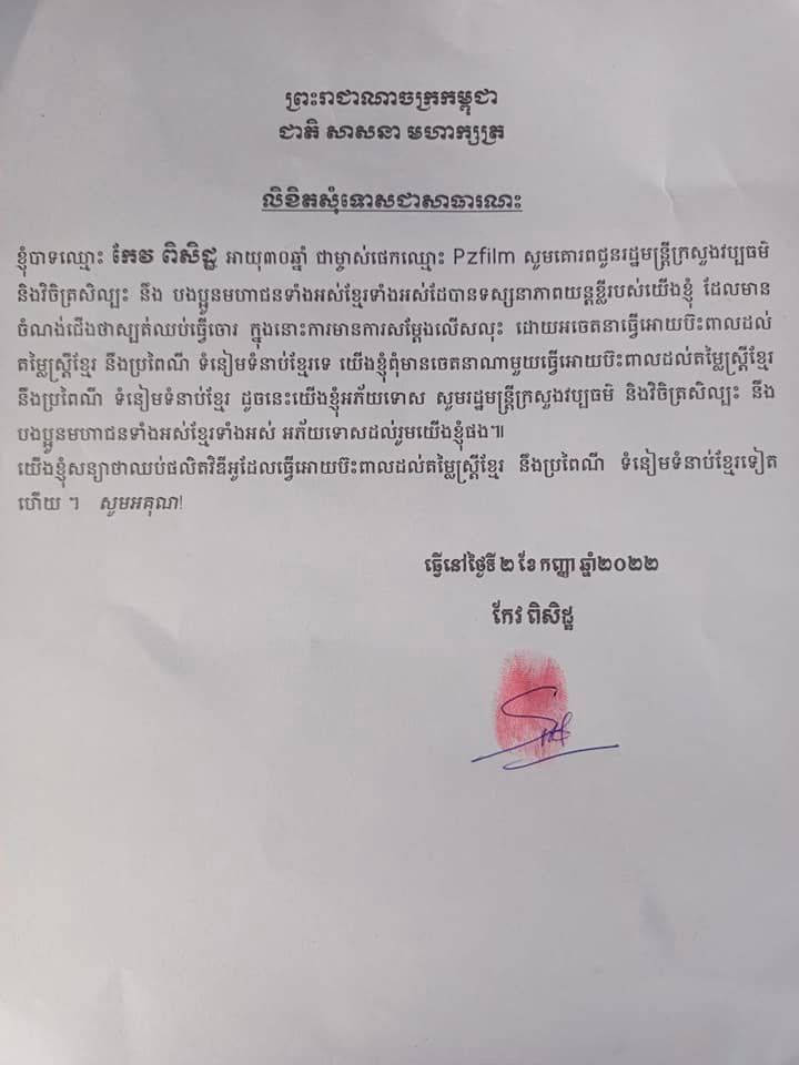(ភ្នំពេញ)៖ ថ្មីៗនេះមានការចែករំលែកពេញបណ្តាញសង្គម ដោយផ្ទុះប្រតិកម្មរបស់មហាជន ទាក់ទងនឹងវីដេអូផុសវីដេអូនៅលើផេក Pzfilm ដែលមានរូបភាពមិនសមរម្យ ប៉ះពាល់សីលធម៌ ប្រពៃណី ទំនៀមទំលាប់ និងតម្លៃរបស់ស្ត្រីខ្មែរ។