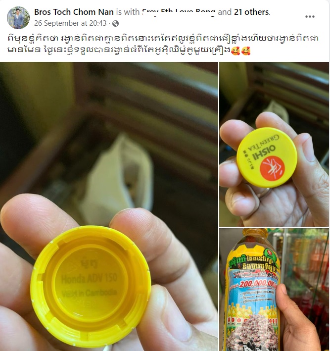 ឈ្នះស្តែងៗ! អតិថិជនមួយរូបរបស់តែ OISHI បង្ហោះសារបង្ហាញអារម្មណ៍ពិតៗក្រោយឈ្នះនូវរង្វាន់ធំម៉ូតូហុងដា ADV