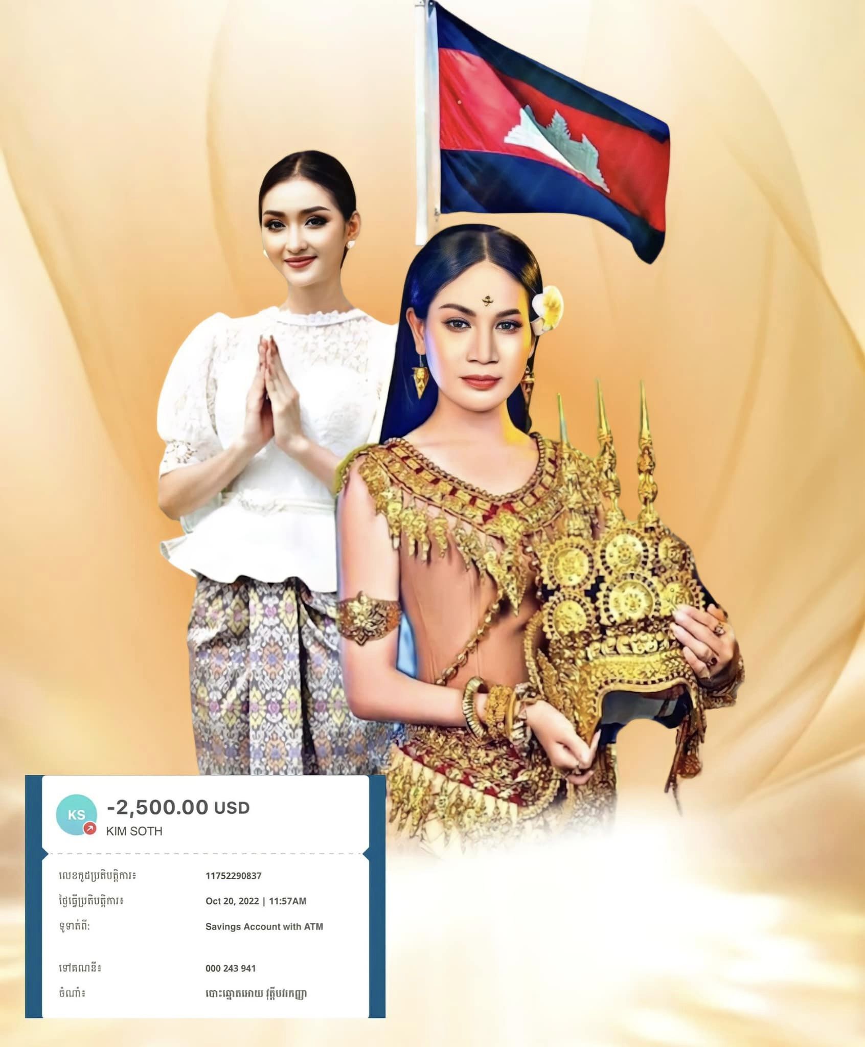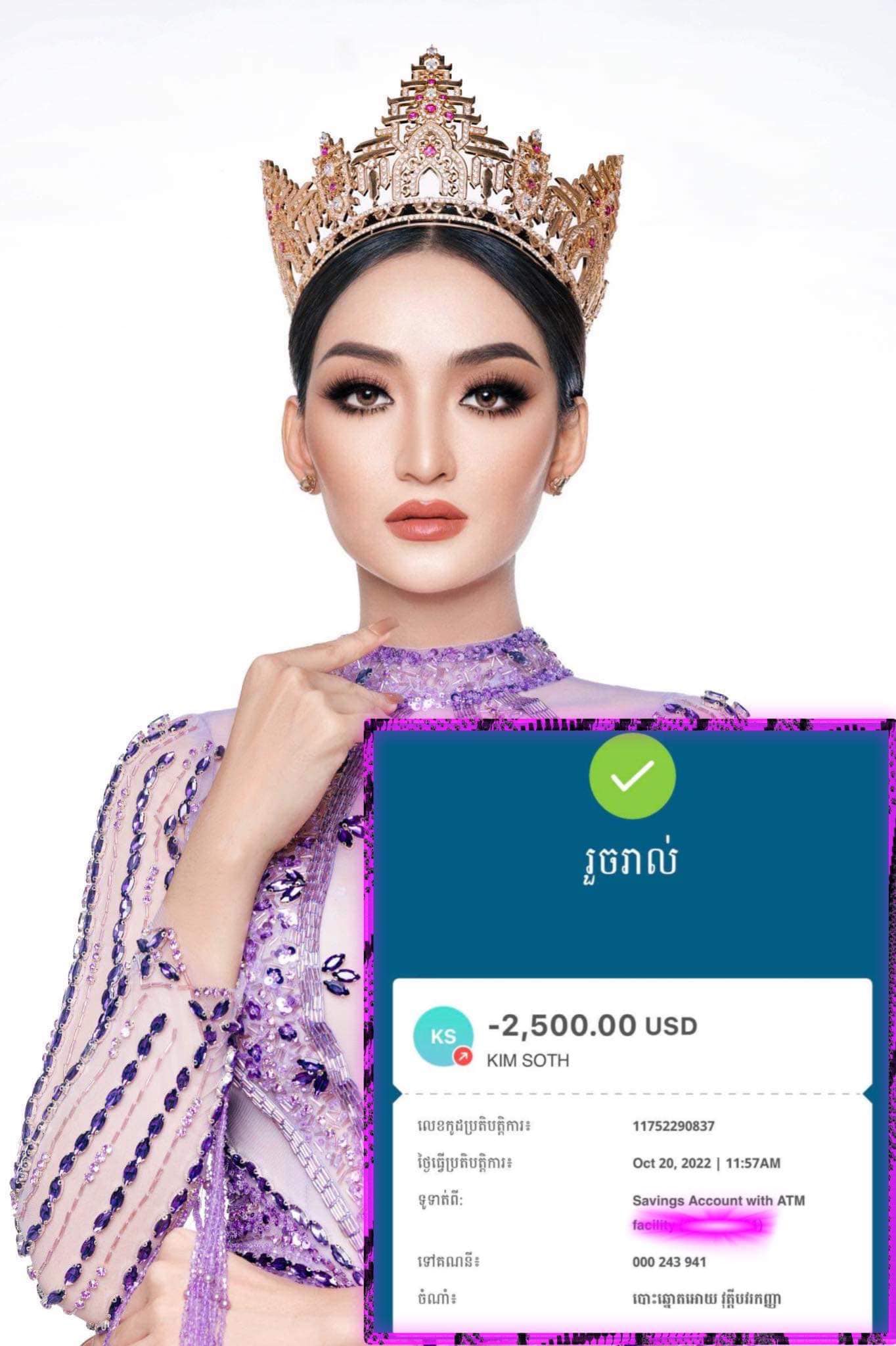 លោកស្រី ស៊ុន្ទរី នួន (ស្រីអូន) បានជួយគាំទ្រ Miss Grand កម្ពុជា តាមរយៈការបោះឆ្នោតចំនួន២៥០០សម្លេង ស្មើនឹង២៥០០ដុល្លារអាមេរិក