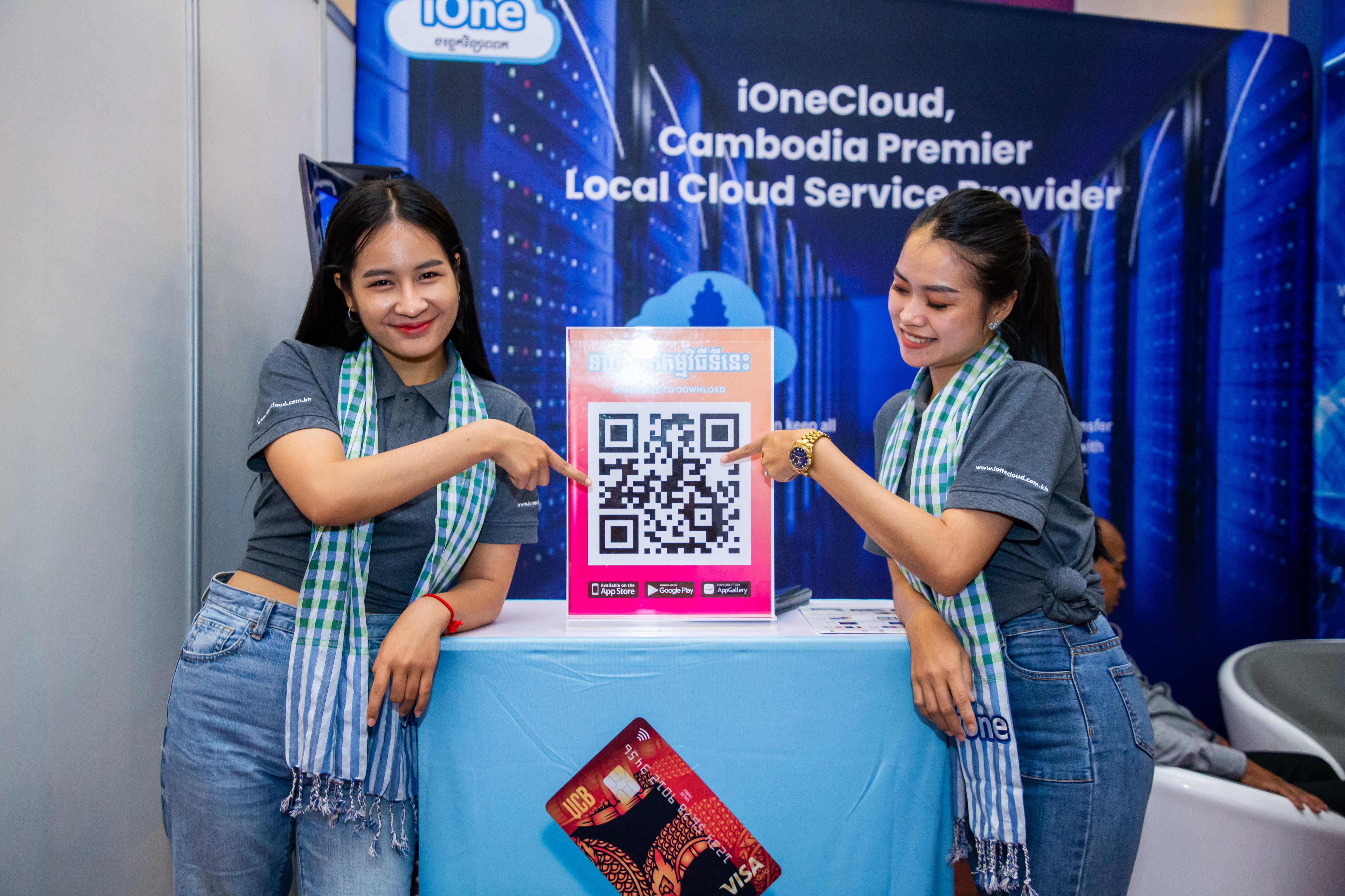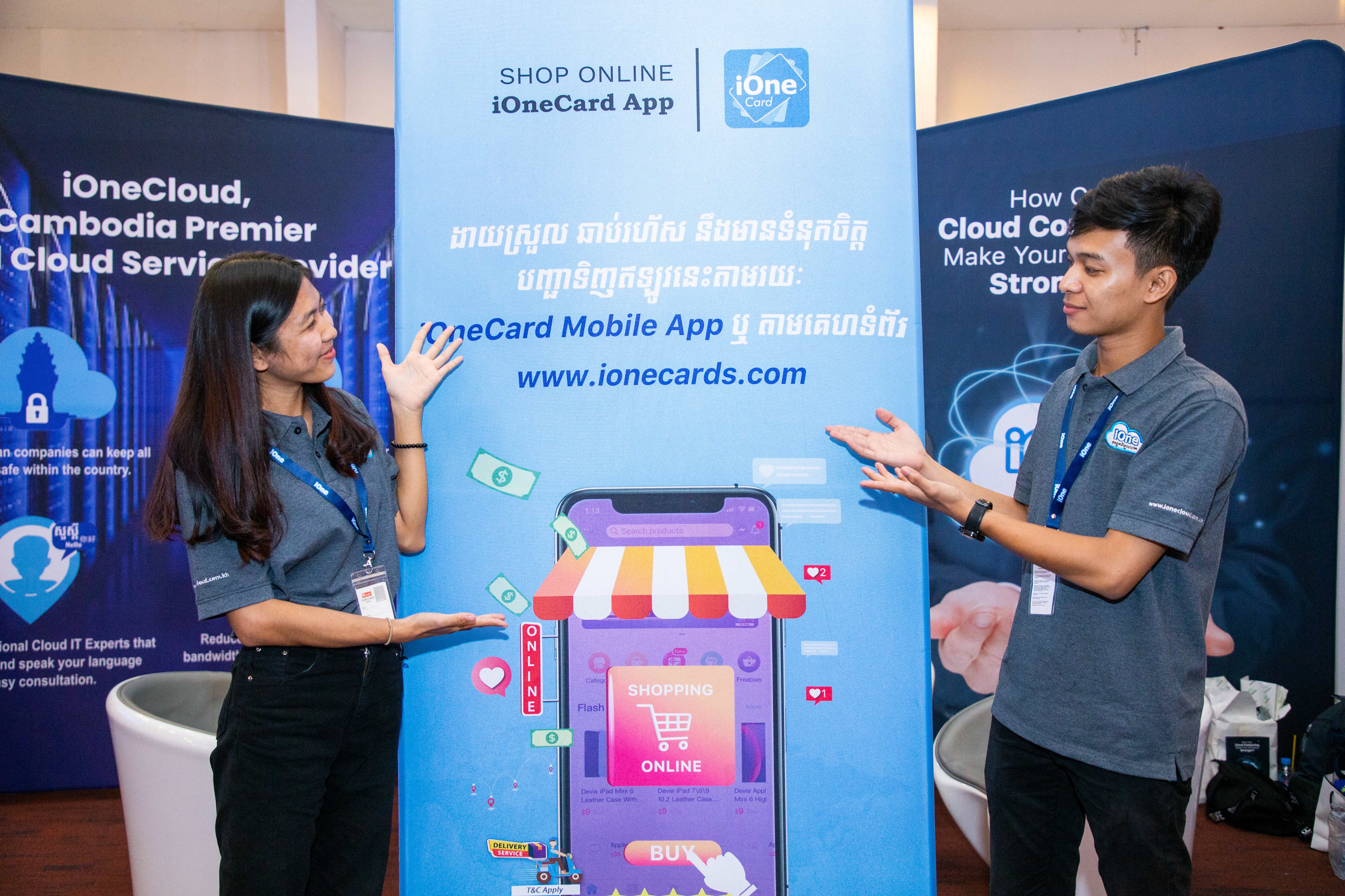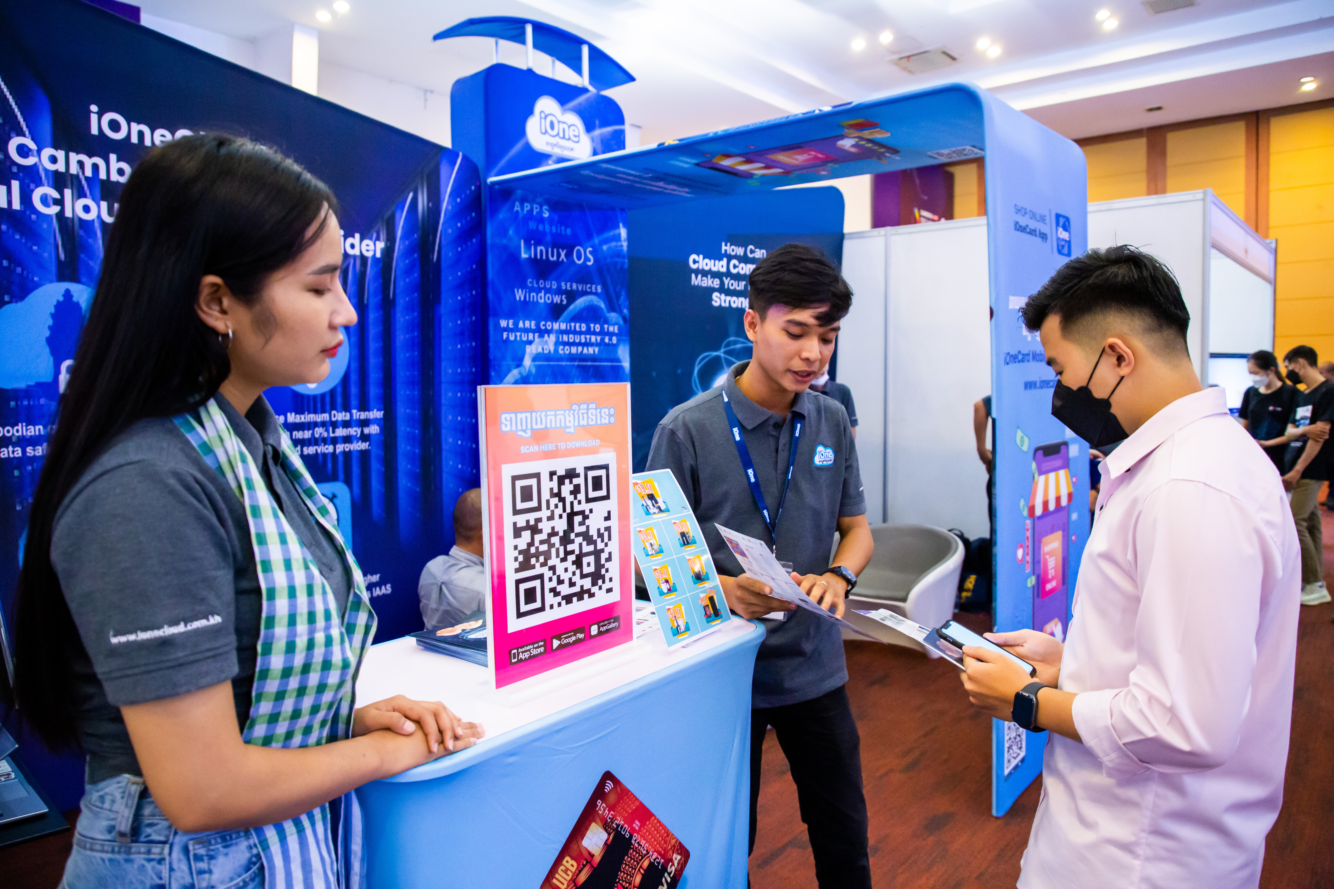 នៅក្នុងចំណោមក្រុមហ៊ុនធំៗទាំងនោះ ក៏មានវត្តមានរបស់ក្រុមហ៊ុន iOne ដែលជាអាជីវកម្មបច្ចេកវិទ្យាលក់រាយឈានមុខគេ នៅក្នុងប្រទេសកម្ពុជាផងដែរ។ នៅឱកាសនោះ ក្រុមហ៊ុន iOne បានបង្ហាញចេញនូវ Applications ថ្មីរបស់ខ្លួន ព្រមទាំងដាក់អោយអ្នកដែលបានចូលរួមទស្សនានៅក្នុងស្តង់ អាចធ្វើការស្កែនដោនឡូដ ដើម្បីទទួលបាននូវព័ត៌មាននានា រួមទាំងការបញ្ចុះតម្លៃទៅលើផលិតផលនានាផងដែរ។ បើតាមការបញ្ជាក់ពីអ្នកតំណាងក្រុមហ៊ុន iOne បានអោយដឹងថា នៅលើ App នេះគឺមានដាក់លក់នូវទំនិញបច្ចេកវិទ្យាគ្រប់មុខ ហើយនិងក៏មានផលិតអេឡិចត្រូនិកជាច្រើនប្រភេទថែមទៀត ជាពិសេសនោះ គឺផលិតផលសម្រាប់ប្រើប្រាស់នៅក្នុងគេហដ្ឋានតែម្តង។ ជាមួយនិង App ថ្មីនេះ គ្រប់គ្នា គ្រាន់តែស្កែនហើយដោនឡូដនោះ គឺនឹងទទួលបានអត្ថប្រយោជន៌ភ្លាមៗតែម្តង។