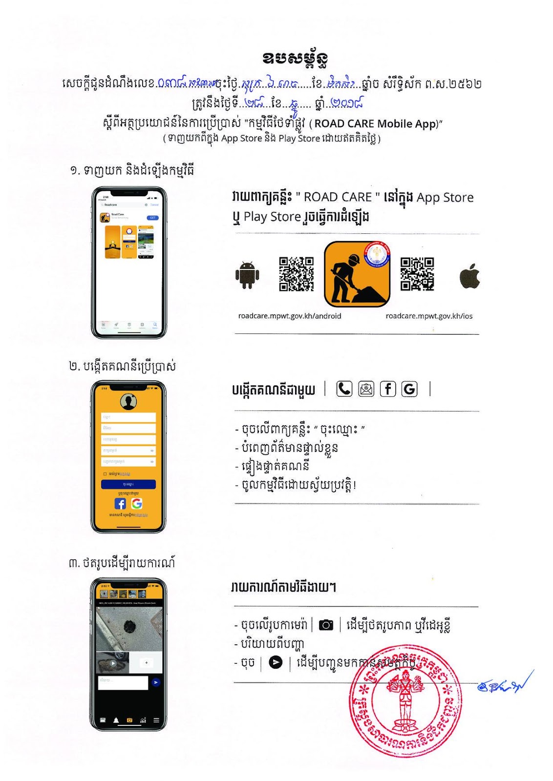 កម្មវិថីថែទាំផ្លូវ (Road Care Mobile App)