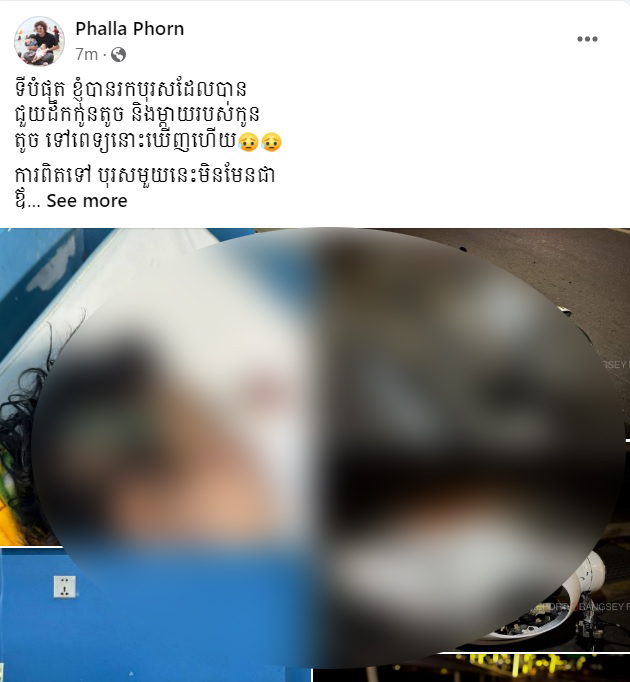 «ពួកខ្ញុំមិនដែលបានស្គាល់គ្នាពីមុនមកទេ តែគាត់បានឃើញខ្ញុំគ្មានអ្នកជូនកូនទៅពេទ្យ ក៏គាត់មានទឹកចិត្តដោយព្រមដឹកជូនពួកខ្ញុំទៅ ហើយពេលត្រលប់មកវិញ ក៏ត្រូវបានគេបុកតែម្តង»។ យ៉ាងណាមិញ រហូតមកដល់ម៉ោងនេះបុរសម្នាក់នេះ មានការប៉ះទង្គិះ និងបែក