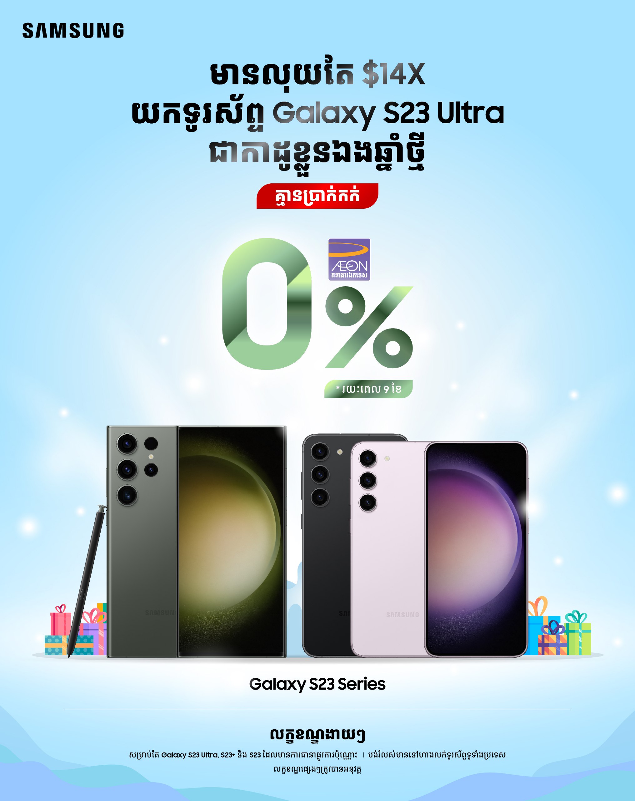 (ភ្នំពេញ) ថ្ងៃទី ០៣ ខែមីនា ឆ្នាំ២០២៣៖ យើងទាំងអស់គ្នាប្រាកដជាបានដឹងច្បាស់រួចមកហើយពីកំពូលសមត្ថភាពដ៏អស្ចារ្យគ្មានគូប្រៀបរបស់កំពូលស្មាតហ្វូនដ៏ល្អឯក Samsung Galaxy S23 Series ដែលបានបង្ហាញខ្លួន និងដាក់លក់ជាផ្លូវការនៅក្នុងប្រទេសកម្ពុជាយើង!