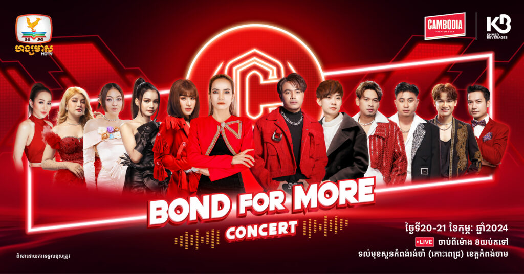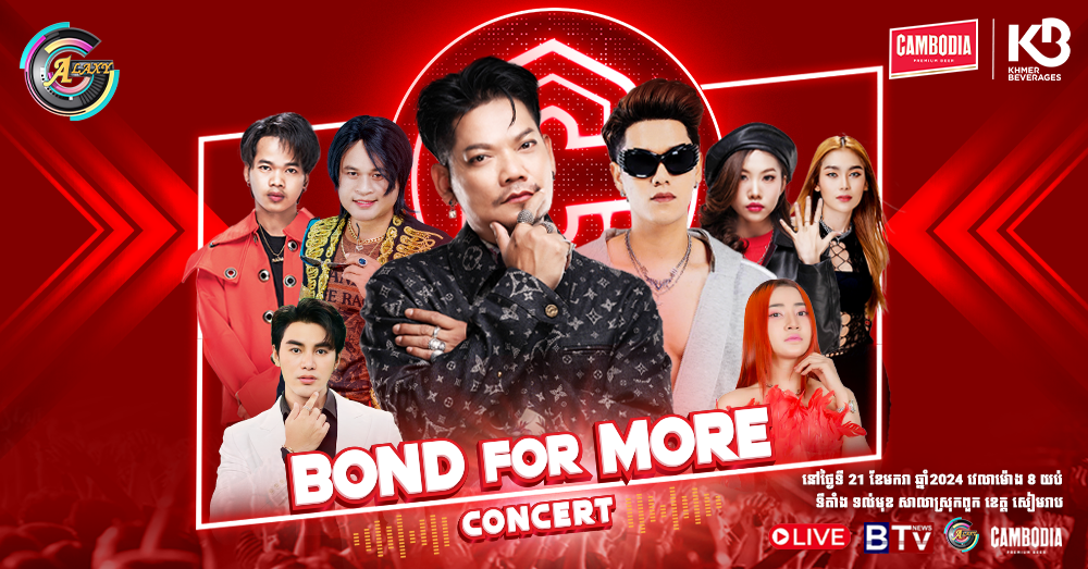 (ភ្នំពេញ)៖ មហាព្រឹត្តិការណ៍ប្រគំតន្ត្រីដ៏ធំសម្បើមប្រចាំប្រទេស CAMBODIA BEER BOND FOR MORE TOUR CONCERT និងមហាព្រឹត្តិការណ៍គុនខ្មែរ របស់ CAMBODIA BEER នឹងប្រព្រឹត្តឡើងនៅចុងសប្តាហ៍នេះដែលមានរយៈពេល ២ថ្ងៃ គឺថ្ងៃទី២០ និង២១ ខែមករា ឆ្នាំ២០២៤។