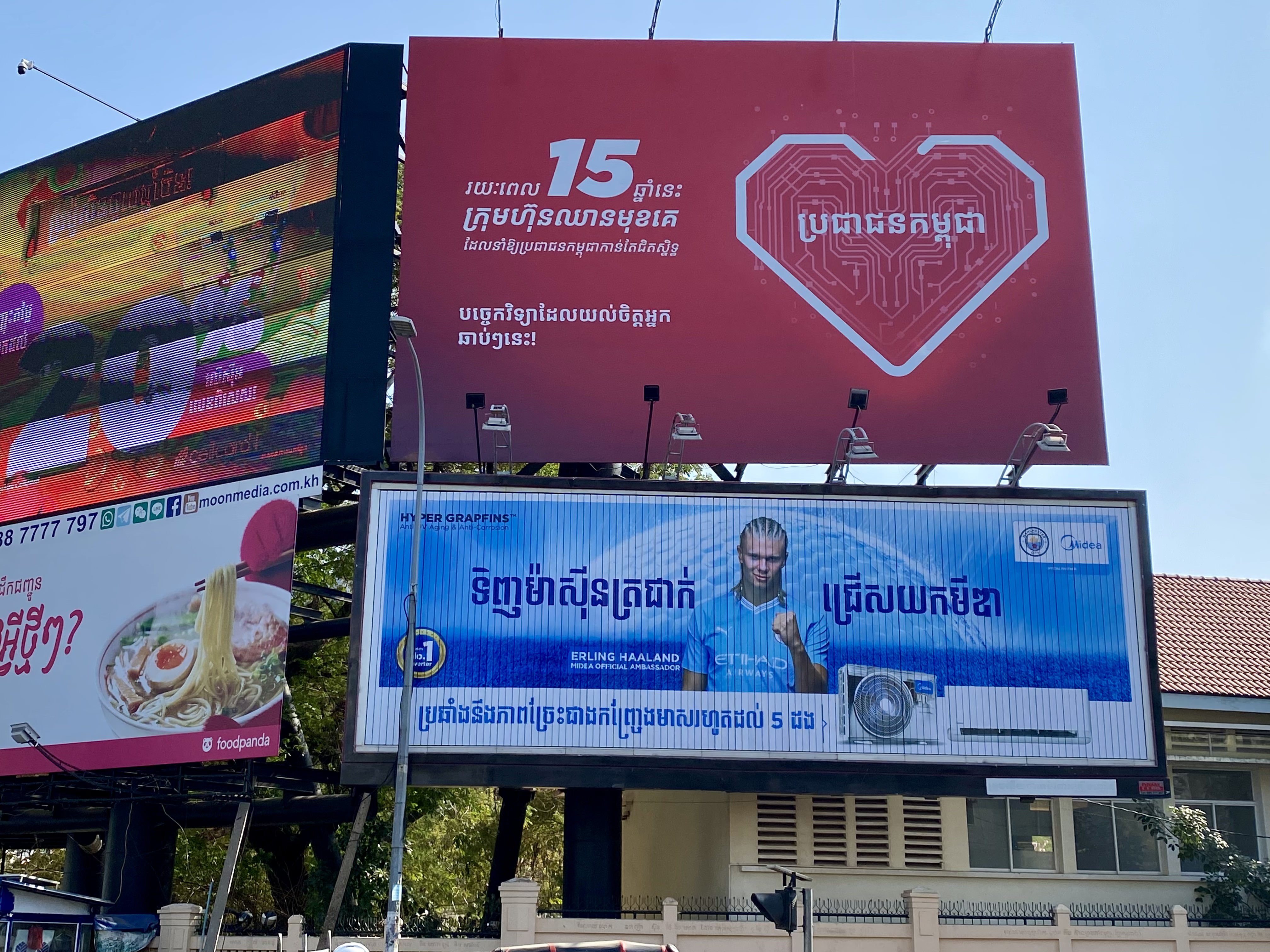 Billboard នៅតាមដងផ្លូវ កំពុងទាក់ទាញការចាប់អារម្មណ៍ពីអ្នកធ្វើដំណើរក្នុងក្រុងភ្នំពេញ