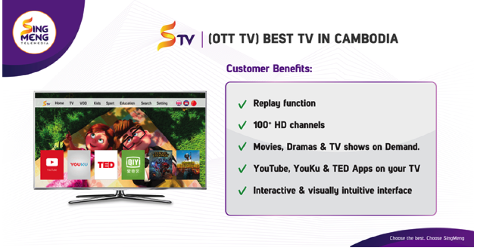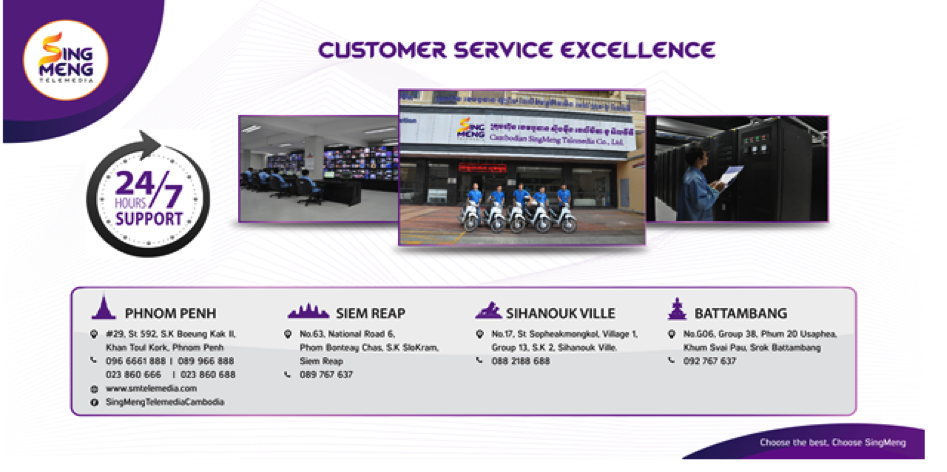ក្រុមហ៊ុន SingMeng Telemedia បានផ្តល់ជូននូវសេវាកម្ម Triple Play Solution (អ៉ីនធើណិត + ទូរទស្សន៍ + ទូរស័ព្ទ VoIP) ធំបំផុតដំបូងគេតែមួយគត់នៅក្នុងប្រទេសកម្ពុជា។ ការផ្តល់សេវាកម្ម Triple Play Solution នេះបានទាក់ទាញម្ចាស់ក្រុមហ៊ុន សណ្ឋាគារ និងខុនដូ ជាច្រើននៅកម្ពុជា។ Triple Play Solution ត្រូវបានដាក់សម្ពោធអោយប្រើប្រាស់ក្នុងឆ្នាំ២០១៧ ដោយបានភ្ជាប់អ៉ីនធើណិត ទូរទស្សន៍ និងទូរស័ព្ទក្នុងដំណោះស្រាយតែមួយ។