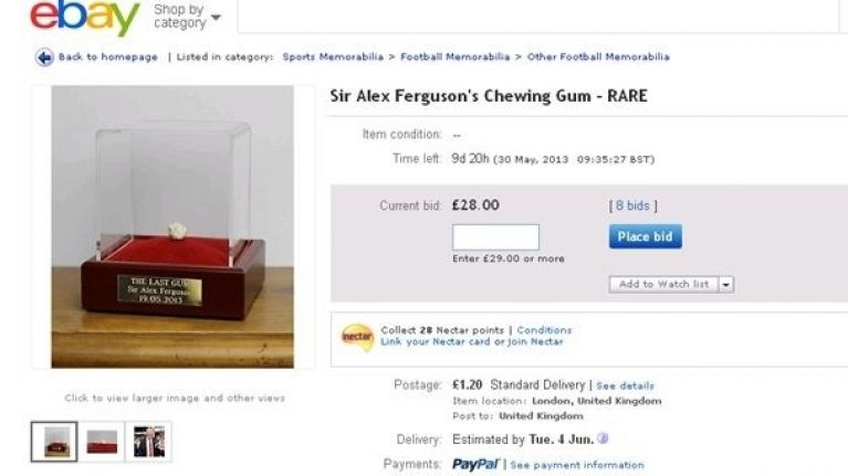 ទោះបីជាយ៉ាងណាក៏ដោយ រាល់ការដាក់លោកនេះត្រូវបានយកទៅចូលរួមក្នុងកម្មវិធីបរិច្ចាគរបស់ក្លឹប Manchester United ហើយការដាក់ដេញថ្លៃនេះត្រូវបានដាក់នៅក្នុង Ebey ដោយបានបញ្ជាក់ក្នុងនោះថា ”ស្ករកៅស៊ូដែលប្រើហើយ និងកំរបំផុតនៅក្នុងពហុកីឡាដា្ឋន Hawthorns និងគេជឿថាជាស្ករកៅស៊ូរបស់តា Sir Alex បន្ទាប់ពីបានដឹកនាំក្នុងអាជីពជាគ្រូបង្វឹកចំនួន ១៥០០ប្រកួតអោយ Manchester United ហើយជាស្ករកៅស៊ូចុងក្រោយរបស់លោកតាមុននឹងចូលនិវត្តន៍ពីគ្រូបង្វឹក” ។ គួរបញ្ជាក់ផងដែរ តា Sir Alex Ferguson មានសញ្ជាតិស្កុតឡែន មានអាយុ៧៧ឆ្នាំ និងបានដឹកនាំក្រុមបិសាចក្រហមប្រហែល ២៧ឆ្នាំ ពីឆ្នាំ ១៩៨៦ ដល់ឆ្នាំ២០១៣ មិនតែប៉ុណ្ណោះលោកបានដឹកនាំក្រុម និងលើកពានជាច្រើន ក្នុងនោះមានពាន English Premier League ចំនួន១៣ ពាន FA Cup Champion Leauge និងពានតូចធំជាច្រើនទៀត៕