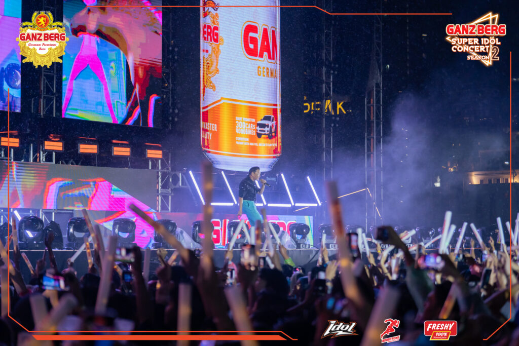 (ភ្នំពេញ) ថ្ងៃទី៣ ខែវិច្ឆិកា ឆ្នាំ២០២៤៖ កាលពីរាត្រីថ្ងៃសៅរ៍ ទី 02 ខែវិច្ឆិកា ឆ្នាំ 2024 មហាព្រឹត្តិការណ៍ប្រគំតន្ត្រីខ្នាតយក្សលំដាប់ពិភពលោក GANZBERG Super Idol Concert រដូវកាលទី 2 បានធ្វើឱ្យកក្រើកកោះពេជ្រ អង្រួនបេះដូងអ្នកគាំទ្រដែលបានចូលរួមយ៉ាងច្រើនកកកុញក្រោមដំណក់ភ្លៀង និងស្រែកហ៊ោកញ្ជ្រៀវស្វាគមន៍វត្តមានរបស់កំពូលតារាចម្រៀង K-POP លោក PSY និងតារាចម្រៀងល្បីៗលំដាប់ប្រទេសជាច្រើនរូបទៀត។