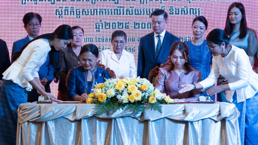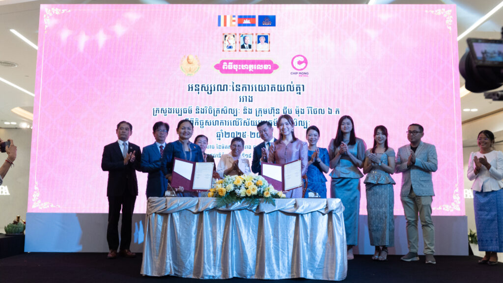 រាជធានីភ្នំពេញ៖ នាថ្ងៃពុធ ទី ១៨ ខែធ្នូ ឆ្នាំ ២០២៤ នេះ ក្រុមហ៊ុន ជីប ម៉ុង រីថែល ឯ.ក បានចុះអនុស្សរណៈនៃការយោគយល់គ្នាជាមួយ ក្រសួងវប្បធម៌ និងវិចិត្រសិល្បៈ ស្តីពីកិច្ចសហការលើវិស័យវប្បធម៌ និងសិល្បៈក្នុងរយៈពេល ៥ឆ្នាំ រាប់ពីឆ្នាំ ២០២៥-២០៣០ ដោយមានការចូលរួមក្រោមអធិបតី លោកជំទាវបណ្ឌិតសភាចារ្យ ភឿង សកុណា រដ្ឋមន្ត្រីក្រសួងវប្បធម៌ និងវិចិត្រសិល្បៈ និងលោកអ្នកឧកញ៉ា លាង ឃុន សហស្ថាបនិក និងជាប្រធានក្រុមប្រឹក្សាភិបាលក្រុមហ៊ុន ជីប ម៉ុង។