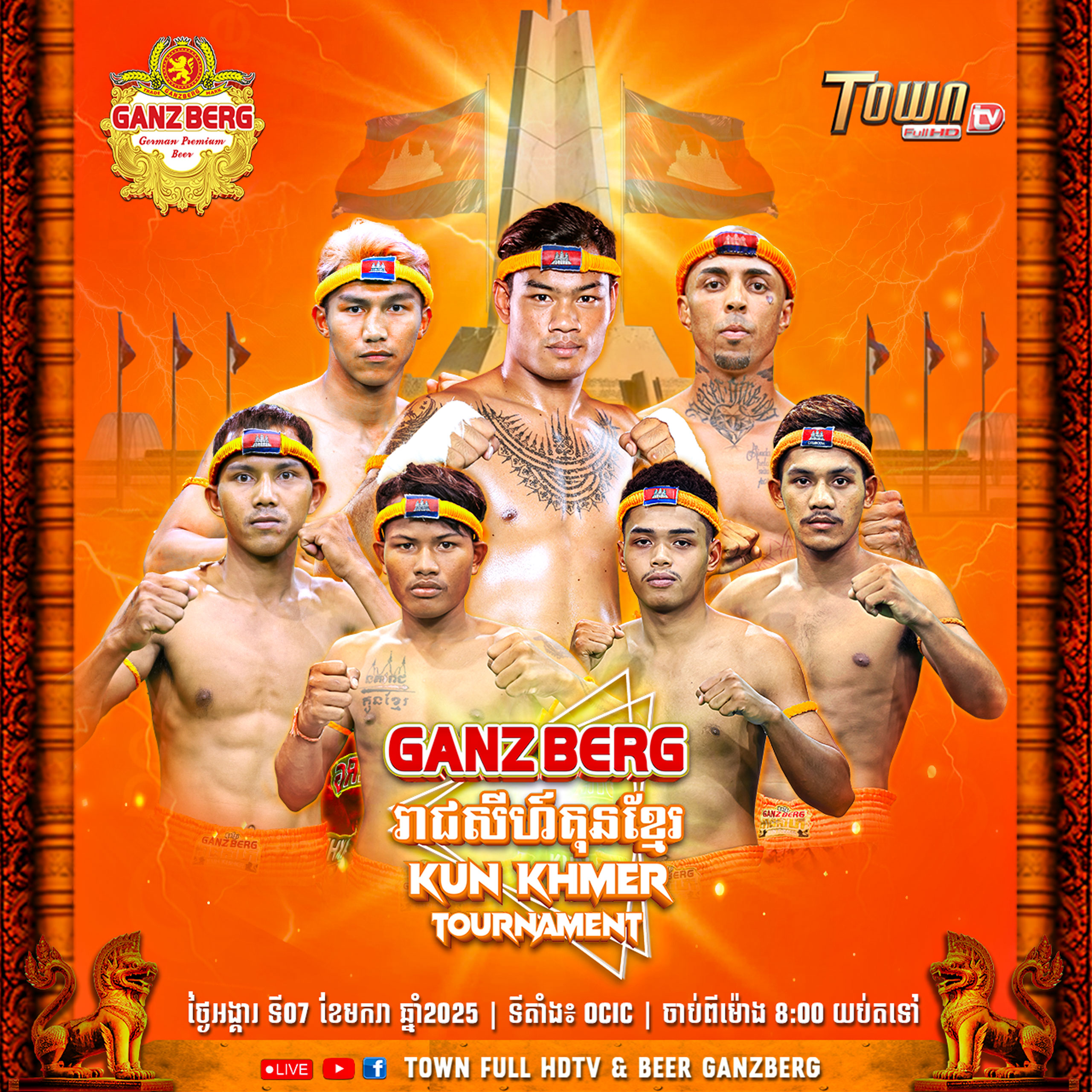 GANZBERG ជួយកីឡាករគុនខ្មែរ កុំភ្លេចចូលរួមទស្សនាឲ្យបានច្រើនកុះករ នាថ្ងៃទី 07 ខែមករា ឆ្នាំ 2025 ខាងមុខនេះ កម្មវិធីចាប់ផ្តើមពីម៉ោង 8 យប់តទៅ ទីតាំង OCIC ជ្រោយចង្វារ រាជធានីភ្នំពេញ ។ ជាមួយគ្នានោះ ក៏មានផ្សាយផ្ទាល់នៅលើកញ្ចក់ទូរទស្សន៍ TOWN FULL HDTV និងនៅលើហ្វេសប៊ុកផេក TOWN FULL HDTV, TOWN FM 102.25 និង BEER GANZBERGផងដែរ ។