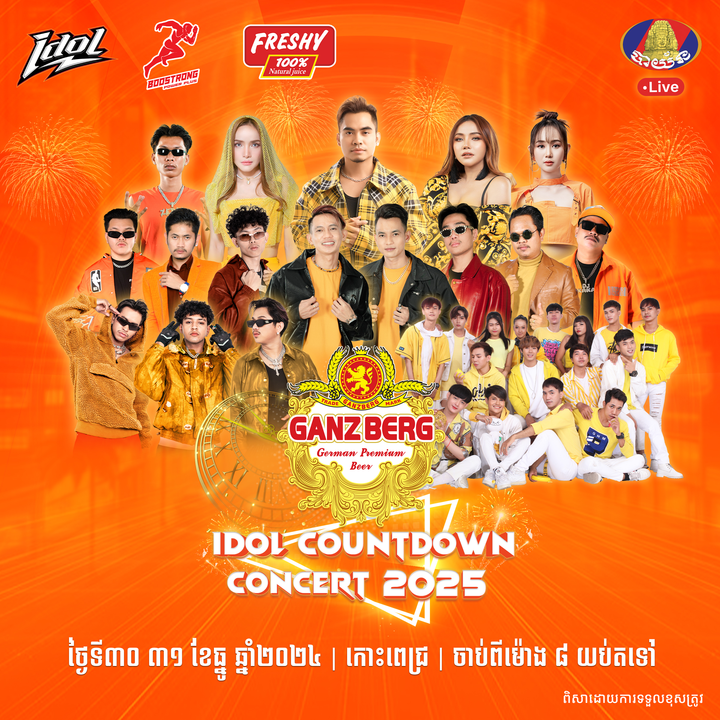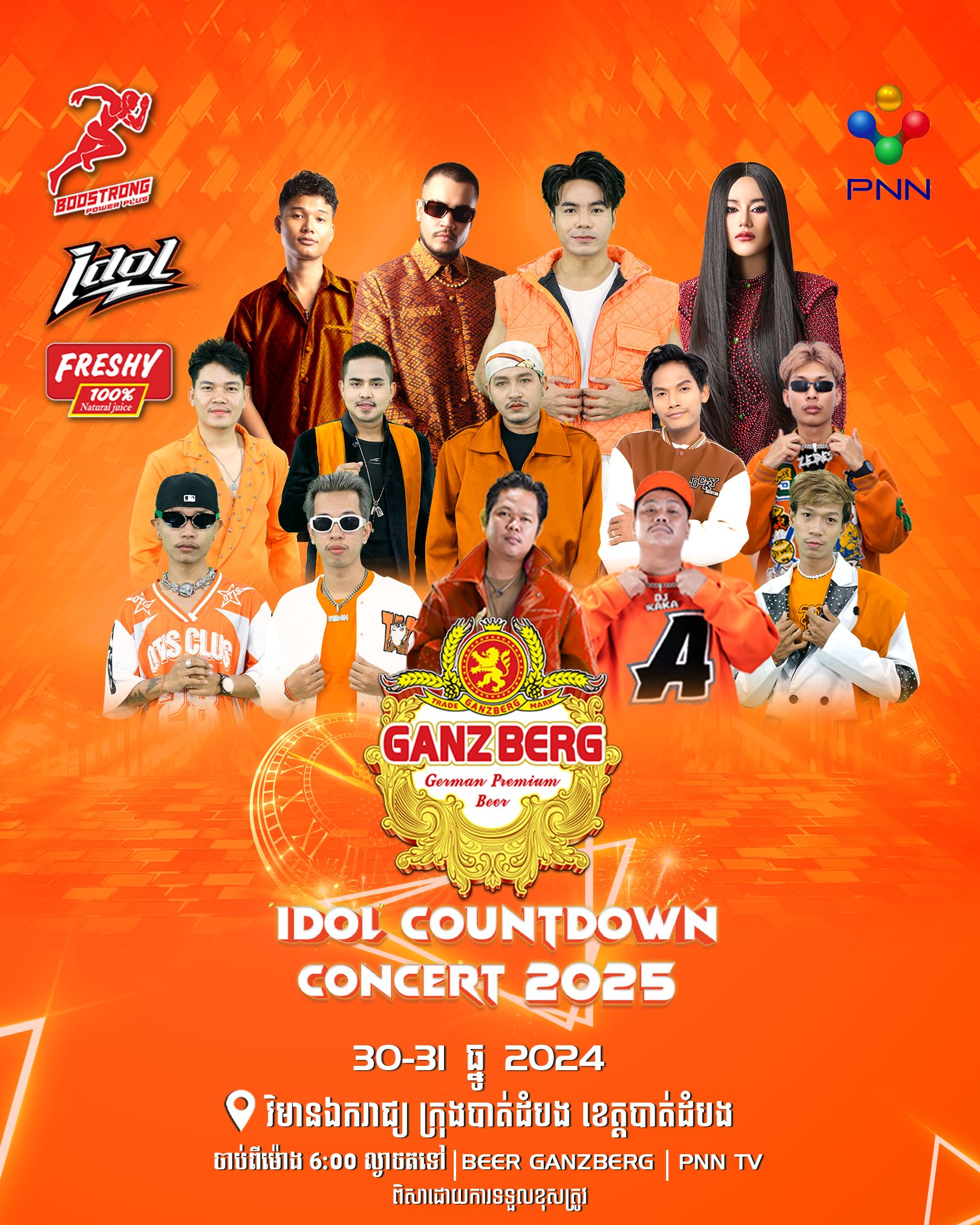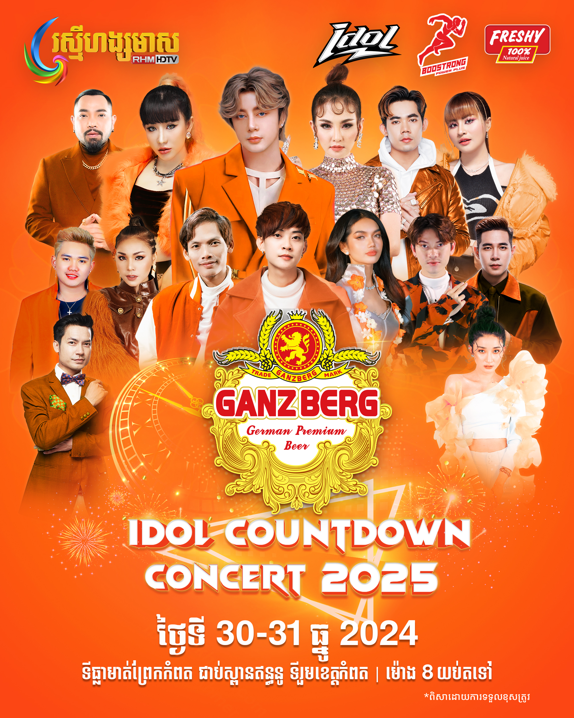 តោះនៅចាំអីទៀតណាត់សក់វែង សក់ខ្លី ពួកម៉ាកល្អ បងប្អូនល្អ កាន់ដៃគ្នា ចូលរួមឲ្យបានច្រើនកុះករក្នុងកម្មវិធី GANZBERG COUNTDOWN CONCERT ទាំងអស់គ្នា ។ គួរបញ្ជាក់ផងដែរថា កម្មវិធីនេះនឹងមានការផ្សាយផ្ទាល់តាមស្ថានីយ៍ទូរទស្សន៍ ហង្សមាស HDTV,BTV,PNN និង Facebook Page : Beer GANZBERG៕