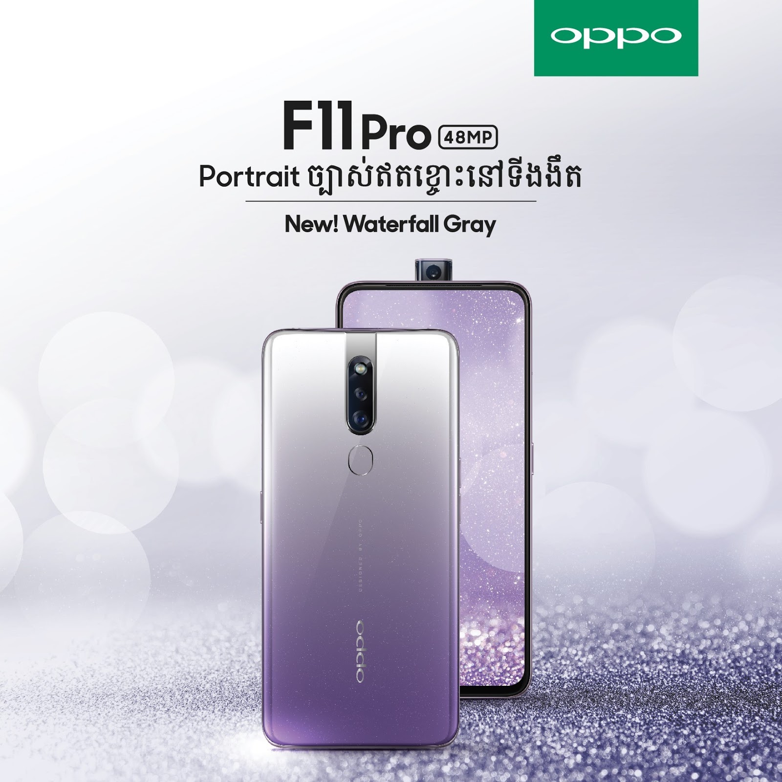 មិនទាន់ដកចិត្តឈប់ស្រលាញ់ F11 Pro Aurora Green និង Thunder Blackផង ស្រាប់តែពេលនេះស្រីស្អាត សាច់សខ្ចី ចាំងពន្លឺ ព្រៀកៗ បានបង្ហាញខ្លួនទៀតហើយ ដែលបាននឹងអង្រួនបេះដូងអតិថិជនគ្រប់គ្នាជាពិសេស ចំពោះសុភាពនារីសម័យថ្មីតែម្តងនោះគឺ OPPO F11 Pro Waterfall Gray ដែលប្រៀបបាននឹងសម្រស់ស្រីស្អាត នាពេលរាត្រីដ៏ស្រទន់ដូច្នោះដែរ ដោយមានភ្ជាប់នូវ Slogan ថា Portrait ច្បាស់ឥតខ្ចោះនៅទីងងឹត ។