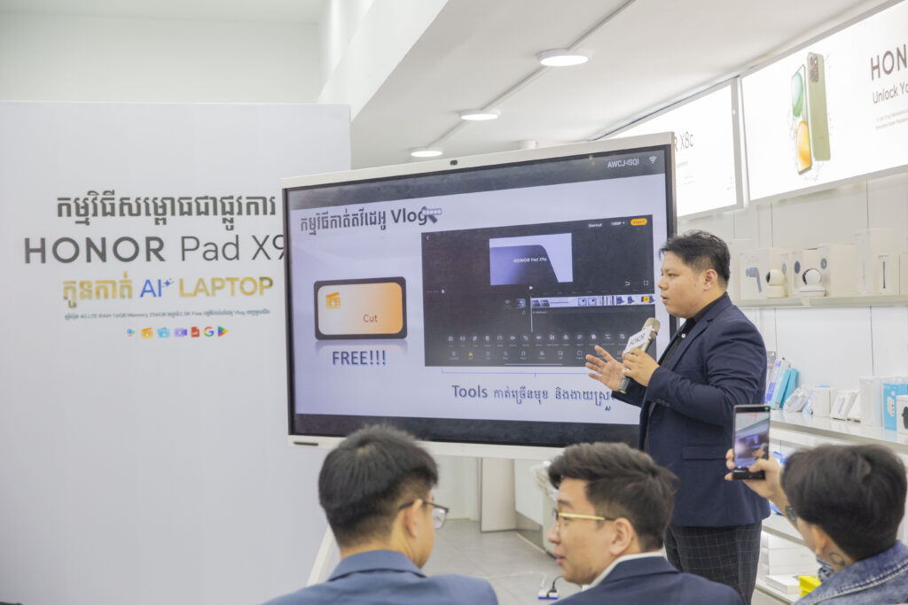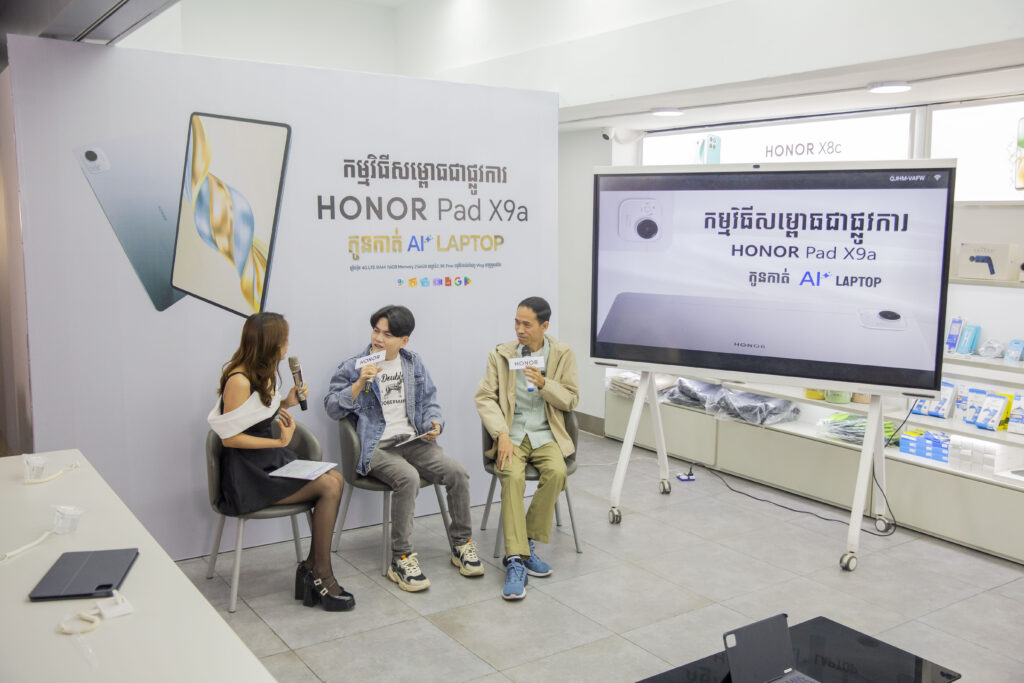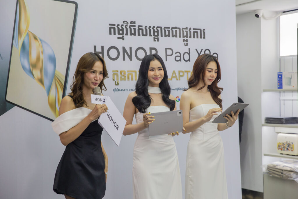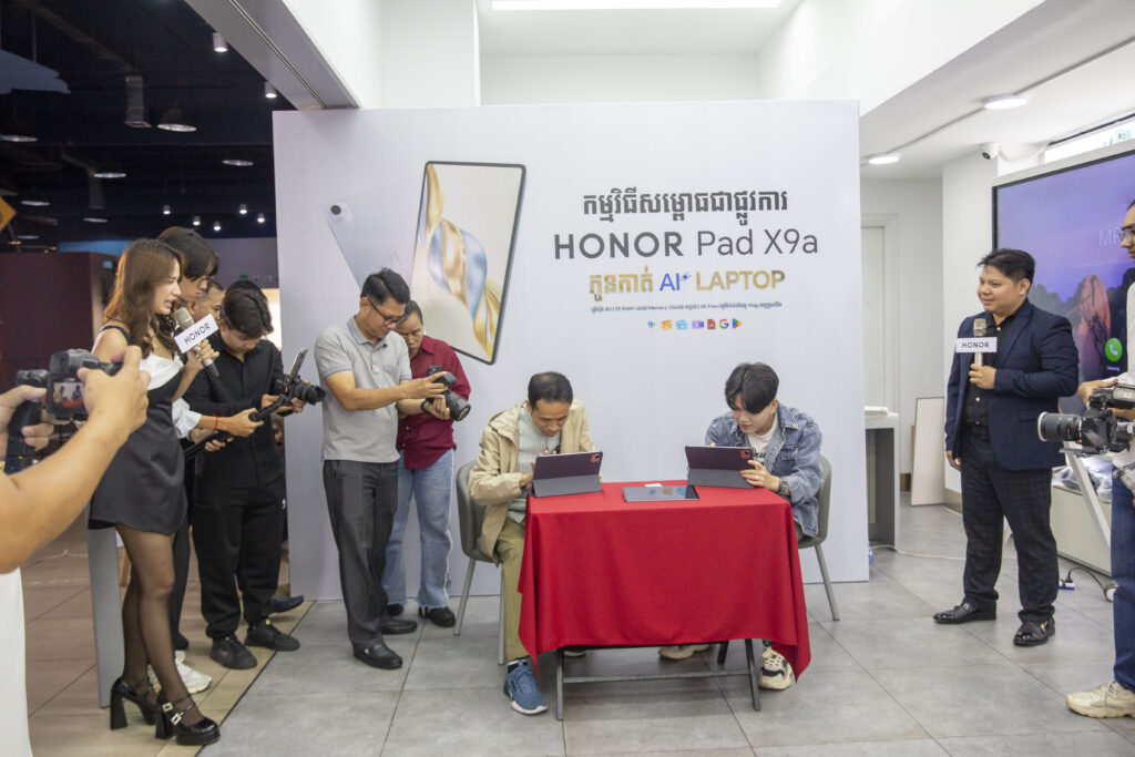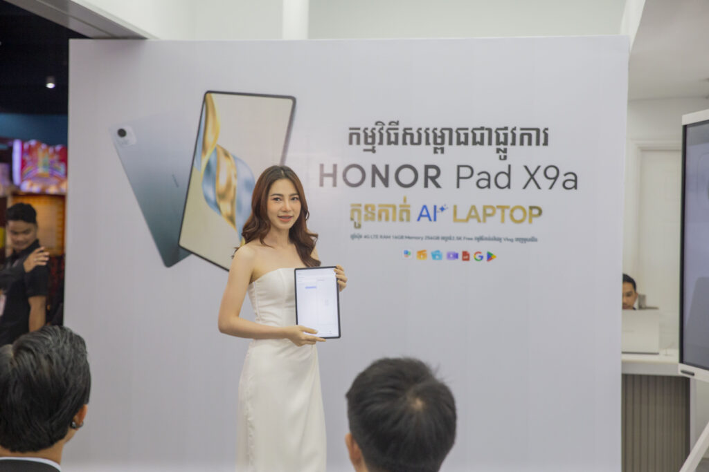 (ភ្នំពេញ មិថុនា)៖ ក្រុមហ៊ុនហនណឺ ដាក់សម្ពោធជាផ្លូវការនូវថេប្លេតស៊េរីថ្មីទម្រង់កុំព្យូទ័រ AI ហនណឺ ផេត អ៊ិច ប្រាំបួន អេ (HONOR Pad X9a) អេក្រង់2.5K ប្រើស៊ីមកាត រ៉េម16ជី ម៉េម៉ូរី256ជី Speak4គ្រាប់ ថ្មកាន់ខ្លាំង ល្បឿនសាកថ្មលឿន 35W មួយកំភ្លេ ភ្ជាប់បច្ចេកវិទ្យាការពារភ្នែក ក្នុងតម្លៃត្រឹមតែ 259$ ថែម10$ពីលើ នឹងទទួលបានប៊ិចឆ្លាតវៃ ព្រមទាំងកាដូសរុប 128$ រួមមាន ប្លូធូ Keyboard, ស្រ្គីនការពារអេក្រង់, និង Mousepad។