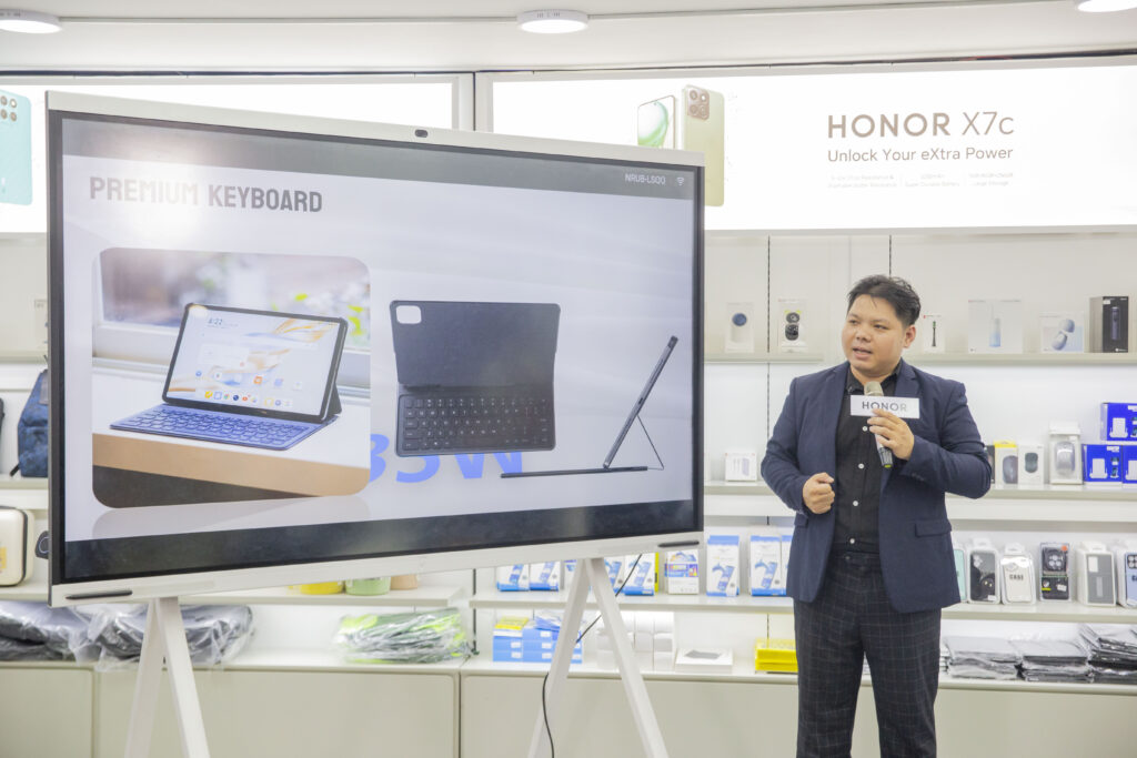 ថេប្លេតកូនកាត់ AI Laptop ហនណឺ ផេត អ៊ិច ប្រាំបួន អេ (HONOR Pad X9a) ត្រូវបានក្រុមហ៊ុនរចនារូបរាងស្រស់ស្អាត ស៊ីវិល័យទាន់សម័យ ស្រាលស្តើងងាយស្រួលកាន់ដោយដៃម្ខាង! ចាប់ពីថ្ងៃនេះ រហូតដល់ថ្ងៃទី 30 មិថុនា 2025 អតិថិជនអាច កក់ទុកមុន ថេប្លេត ហនណឺ ផេត អ៊ិច ប្រាំបួន អេ (HONOR Pad X9a) ក្នុងតម្លៃត្រឹមតែ 259$ ថែមកាដូ ប្លូធូ Keyboard, ស្រ្គីនការពារអេក្រង់, និង Mousepad សរុបជាទឹកប្រាក់ 128$។ កាន់តែពិសេសថែមតែ10$ ពីលើ នឹងទទួលបានប៊ិចឆ្លាតវៃភ្លាមៗ៕