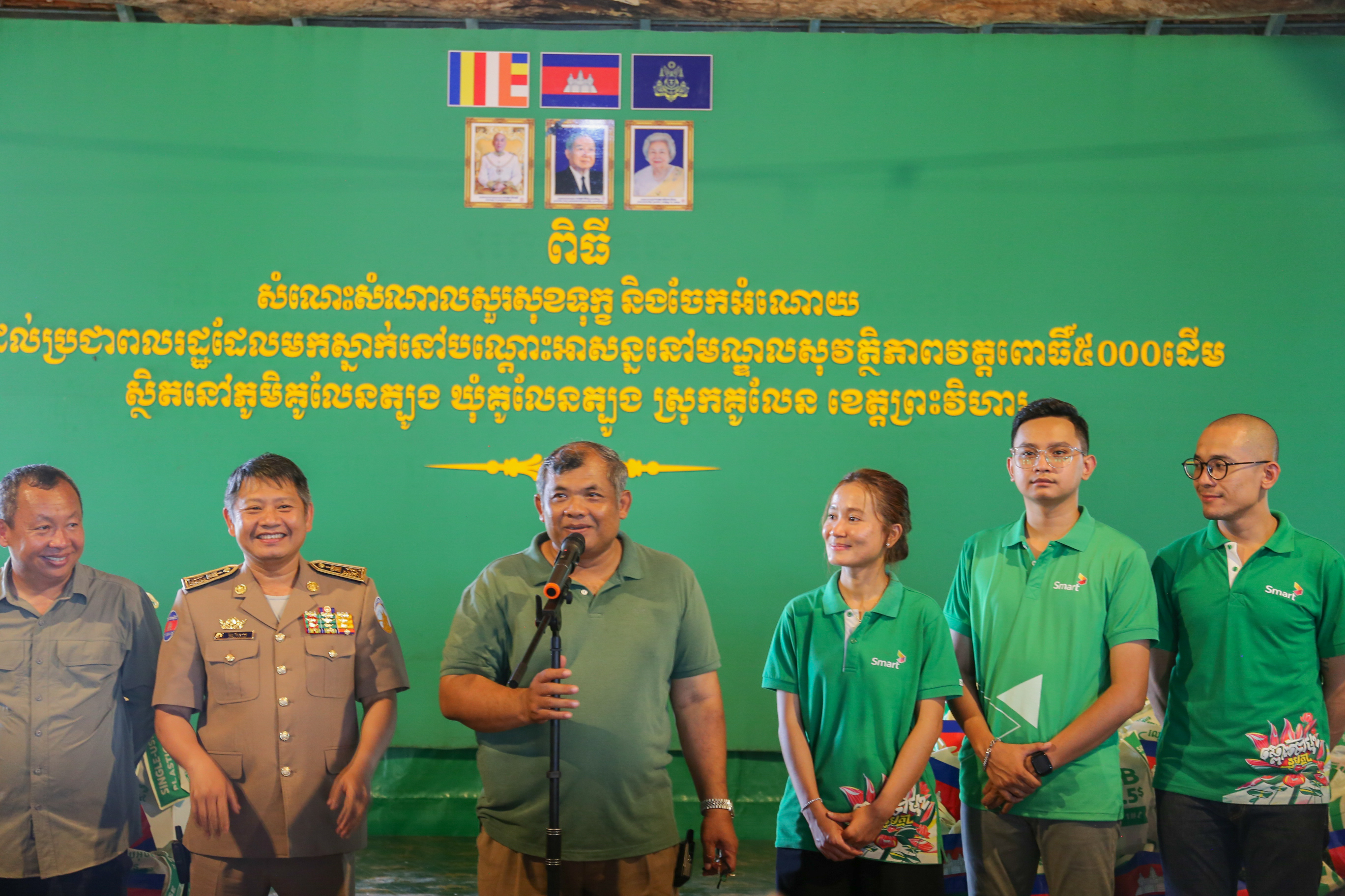 ឯកឧត្តម អ៊ុក គឹមសាន អភិបាលរងខេត្តព្រះវិហារបានថ្លែងអំណរគុណយ៉ាងជ្រាលជ្រៅដល់ក្រុមហ៊ុន Smart ដែលបានចំណាយពេលវេលានាំយកអំណោយទាំងអស់នេះ មកជូនផ្ទាល់ដល់បងប្អូនប្រជាជន។ លោកក៏បានលើកឡើងដែរថា “អំណោយទាំងនេះ ពិតជាបង្ហាញនូវឆន្ទៈក្នុងការចូលរួមជាមួយរាជរដ្ឋាភិបាល និងប្រជាពលរដ្ឋកម្ពុជាយើង ដើម្បីសង្គម និងប្រទេស ជាពិសេសនៅក្នុងស្ថានភាពដែលកំពុងត្រូវការជាចាំបាច់។”
