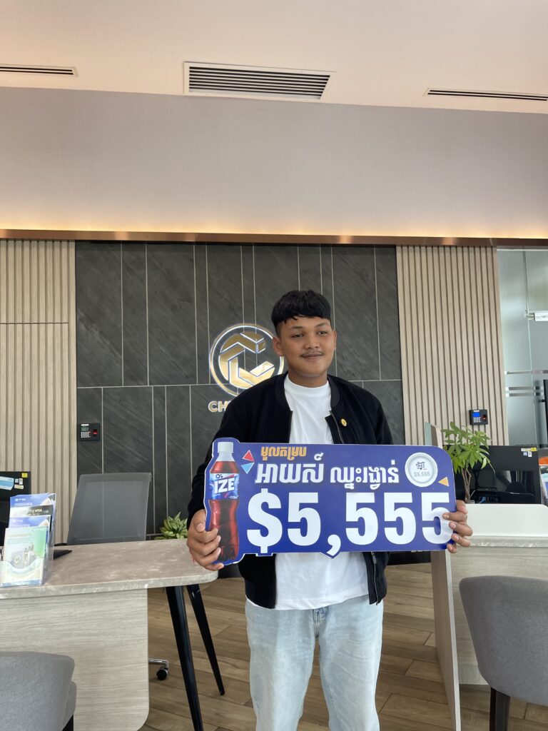 (ពោធិ៍សាត់)៖សំណាងពិតមើលមិនឃើញ ទីបំផុតមានលទ្ធភាពតបស្នងសងគុណអ្នកមានគុណហើយ! ប្អូនប្រុសសំណាងរូបនេះ មានឈ្មោះថា លាត លៀង រស់នៅ ភូមិឆាយលូក ឃុំអូរសោម ស្រុកវាលវែង ខេត្តពោធិ៍សាត់។ ប្អូនប្រុសបានបានបញ្ជាក់ថា មកពីខ្លួនចូលចិត្តញាំមីហឹរខ្លាំង ញាំហឹរៗចឹងញាំជាមួយអាយស៍កូឡាក្លាសេត្រជាក់ៗឆ្ងាញ់ចាប់ជាតិគ្នាខ្លាំងណាស់។ស្រាប់តែក្រឡែកមើល កម្របដប ឃើញ5បួនដង ដែលស្មើនិង5,555ដុល្លា រំភើបផង សប្បាយអរផង រត់ទៅប្រាប់មីង ប្រាប់ប៉ាម៉ាក់បងប្អូន នាំគ្នាស្រែកហ៊ោរឡើងផ្អើរពេញផ្ទះតែម្តង។