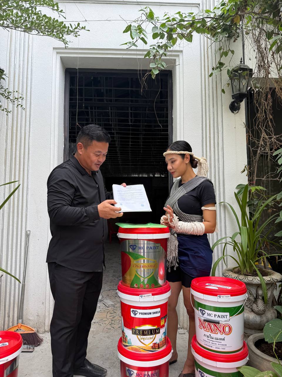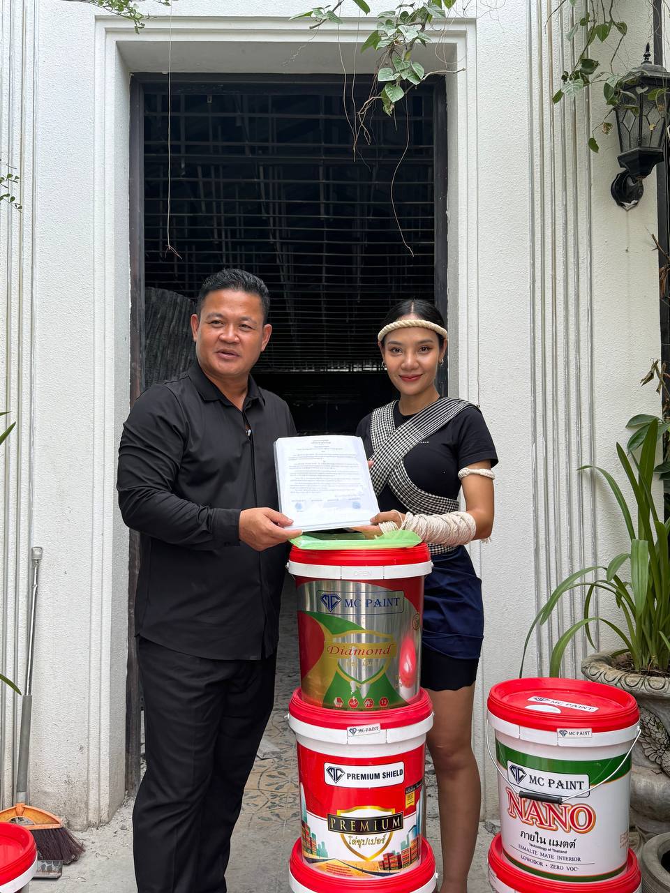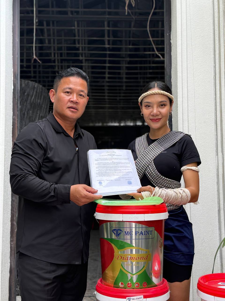 ត្រឡប់មកពីក្រៅប្រទេសភ្លាម លោកឧកញ៉ា ហ៊ួត ជា នាំយកសម្ភារៈសំណង់ទៅជួយកញ្ញា ពេជ្រ ចរណៃភ្លាម និងទទួលធ្វើជា BA ថ្នាំលាប MC PAINT ថែមទៀត
