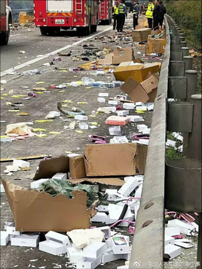 iPhone X រាប់ពាន់គ្រឿងធ្លាក់រាយប៉ាយពេញដី បន្ទាប់ពីរថយន្ដធន់ធំមួយជួបគ្រោះថ្នាក់ចរាចរណ៍