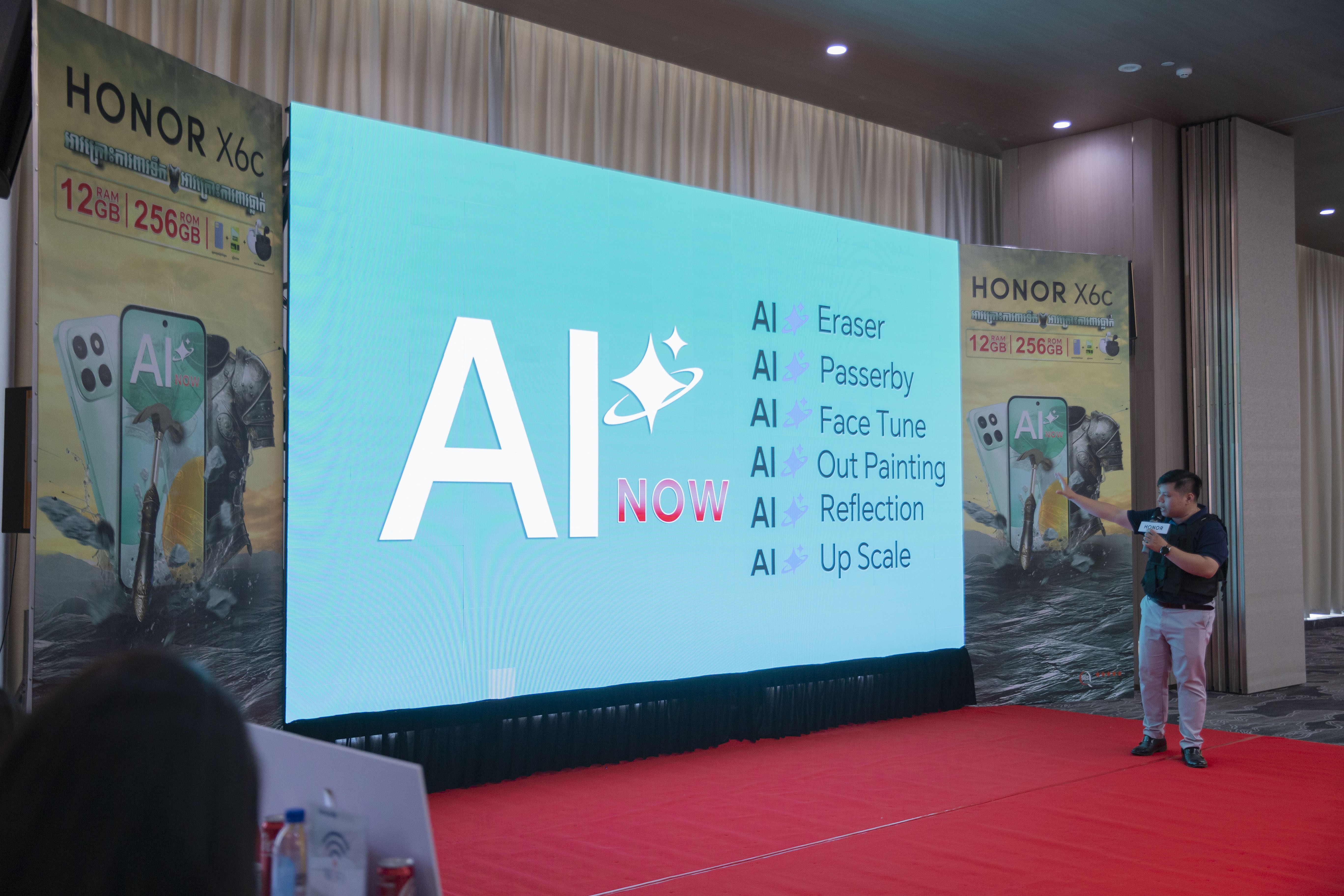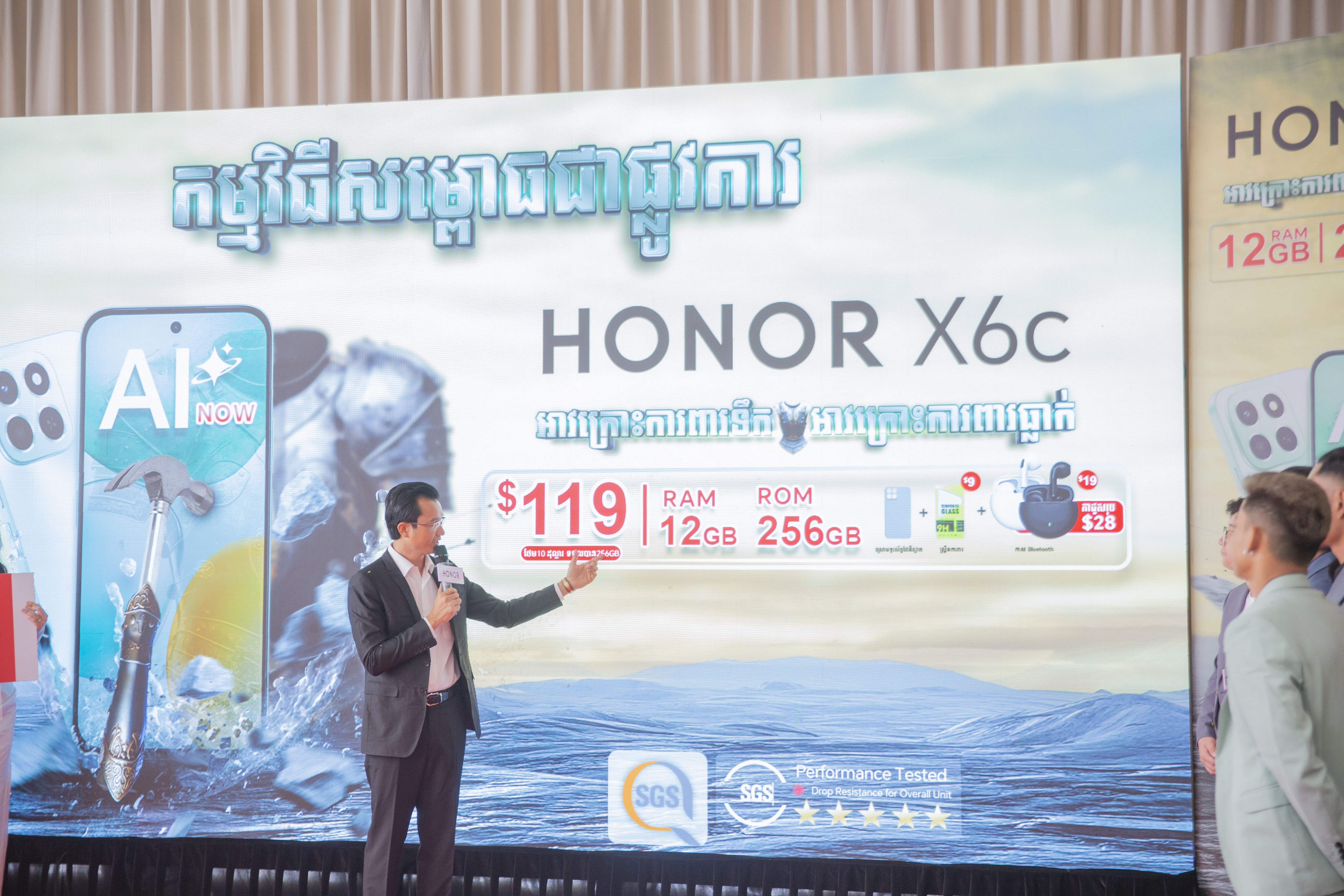 ក្រុមហ៊ុន ហនណឺ (HONOR) ប្រចាំប្រទេសកម្ពុជាបានដាក់សម្ពោធជាផ្លូវការនូវស្មាតហ្វូនAIស៊េរីថ្មី ម៉ូដែល ហនណឺ អ៊ិចប្រាំមួយស៊ី (HONOR X6c) អាវក្រោះការពារទឹក ការពារធ្លាក់ តាន់360ដឺក្រេ មានមុខងារAI សម្បូរបែប ជាពិសេសអាចបកប្រែគ្រប់ភាសា ដាក់លក់ជាផ្លូវការក្នុងតម្លៃត្រឹមតែ 119$ ថែមកាដូសរុប 28$ រួមមានកាសBluetooth, ខេស និង ស្រ្គីន ផ្អើលអ្នកគាំទ្រ និងភ្ញៀវកិត្តិយស និង តារាInfluencers ល្បីៗប្រចាំព្រះរាជាណាចក្រកម្ពុជា!