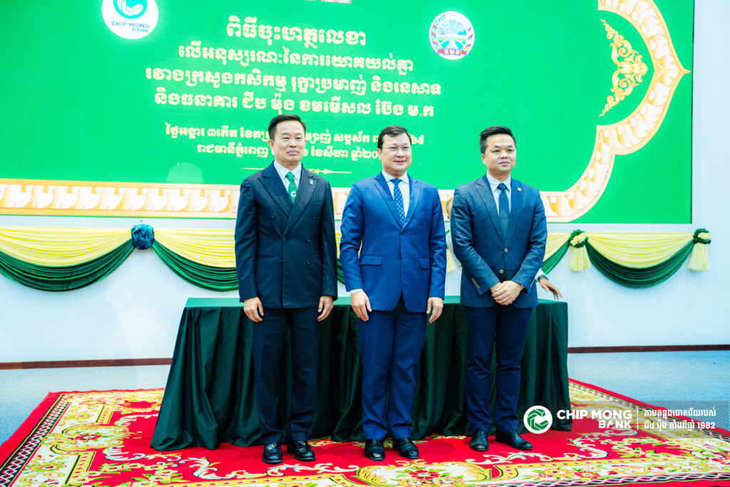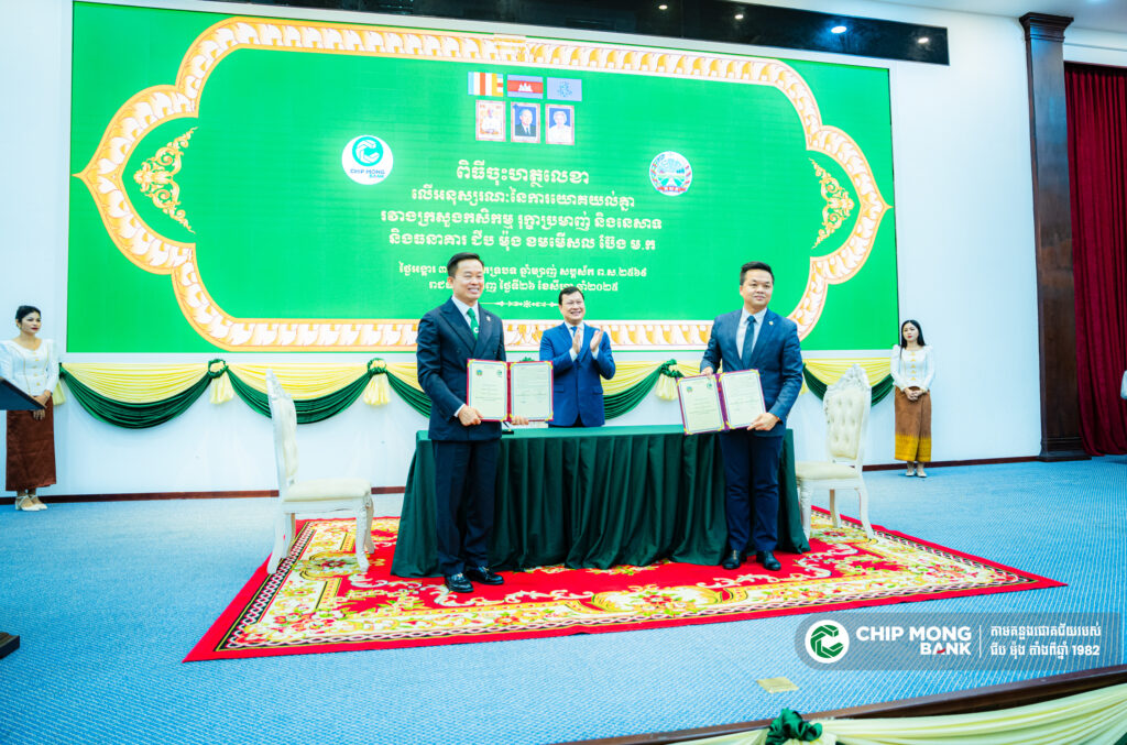 អនុស្សរណៈនៃការយោគយល់នេះត្រូវបានចុះហត្ថលេខាដោយអ្នកឧកញ៉ា លាង ម៉េង អគ្គនាយកធនាគារ ជីប ម៉ុង និង ឯកឧត្តម ឃឹម ហ្វីណង់ អនុរដ្ឋលេខាធិការ និងជាអ្នកនាំពាក្យ ក្រសួងកសិកម្ម រុក្ខាប្រមាញ់ និងនេសាទ ក្រោមអធិបតីភាពដ៍ខ្ពង់ខ្ពស់របស់ ឯកឧត្ដម ឌិត ទីណា រដ្ឋមន្ត្រីក្រសួងកសិកម្ម រុក្ខាប្រមាញ់ និងនេសាទ។