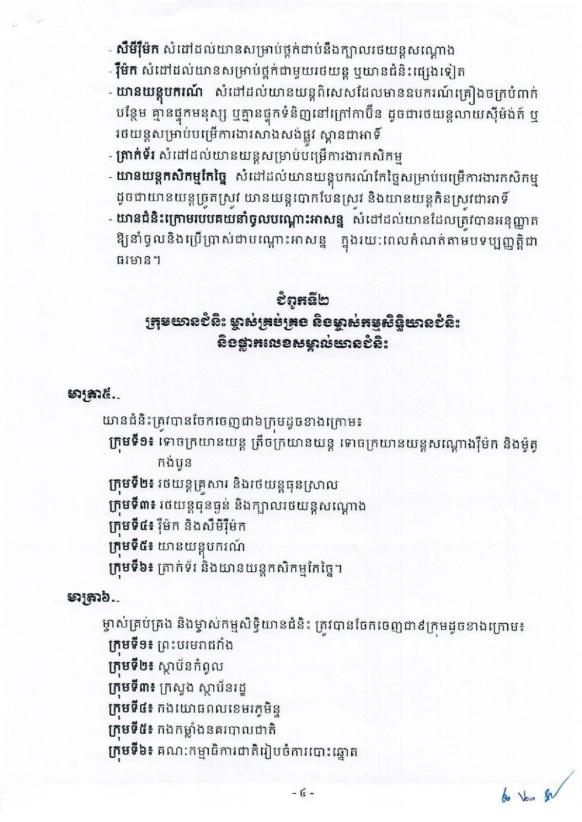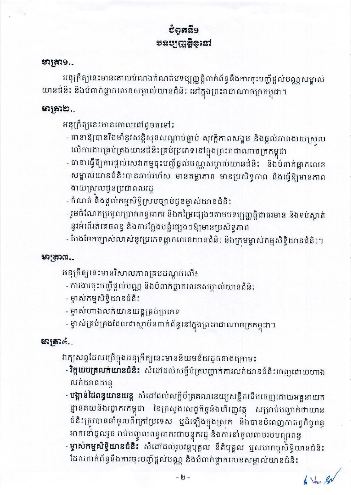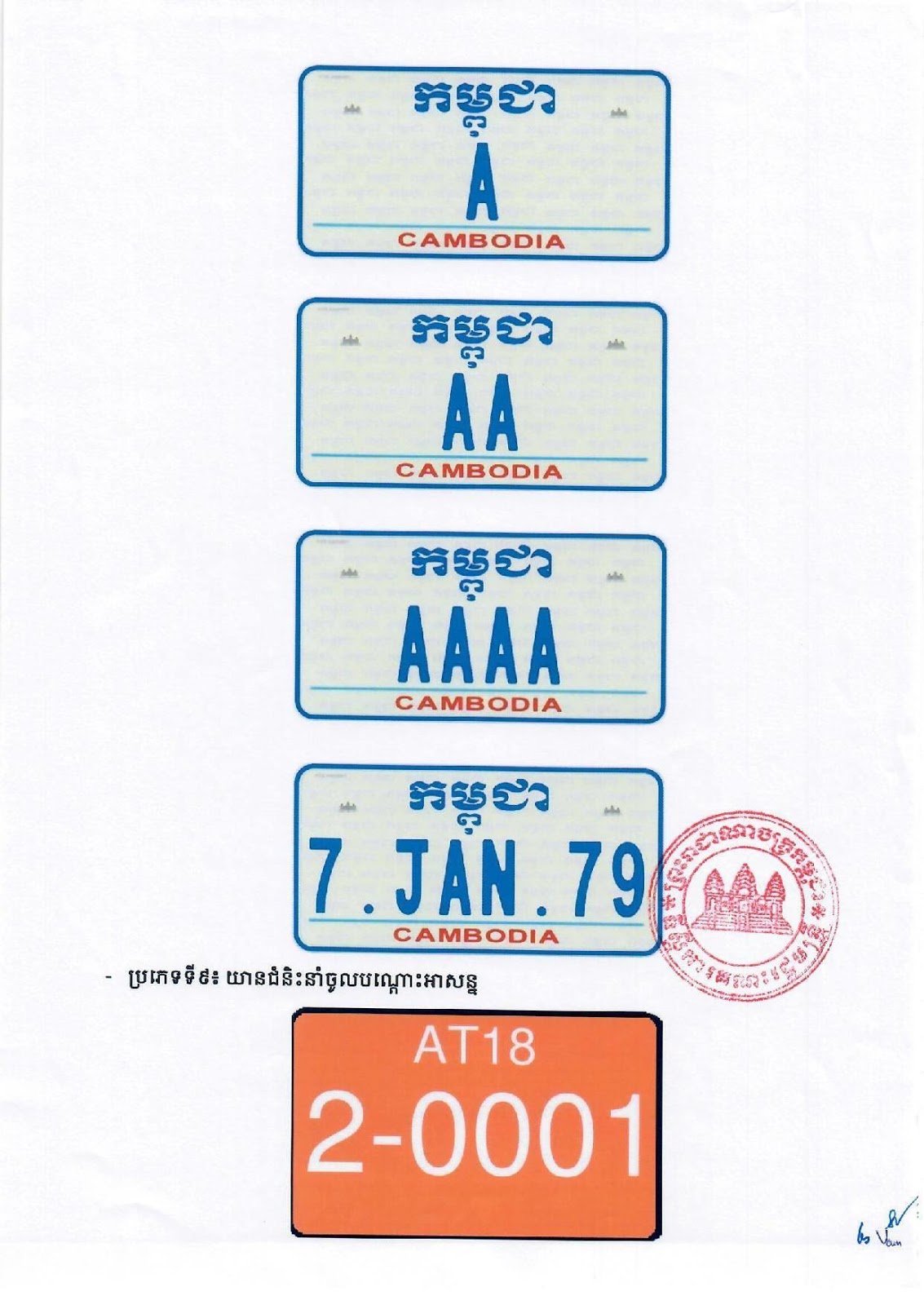 មុននេះបន្តិចរដ្ឋាភិបាលកម្ពុជាបានចេញអនុក្រឹត្យមួយស្តីពីការចុះបញ្ជីបណ្ណសំគាល់យាន្តជំនិះ និងបំពាក់ស្លាកលេខសំគាល់យាន្តជំនិះ ដោយអនុក្រឹត្យថ្មីនេះបានបង្ហាញពីគំរូស្លាកលេខពិសេសរបស់រថយន្ត ថែមទៀតផង ដែលមានគោលបំណងកំណត់បទប្បញ្ញត្តិពាក់ព័ន្ធនឹងការចុះបញ្ជីផ្តល់បណ្ណសម្គាល់យានជំនិះ និងបំពាក់ស្លាកលេខសម្គាល់យានជំនិះ នៅក្នុងប្រទេសកម្ពុជា។
