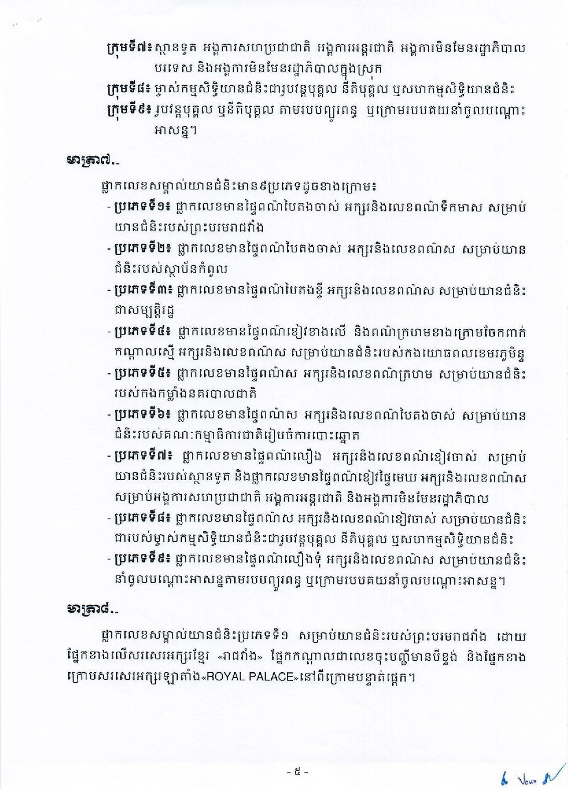 អ្វីដែលកត់សំគាល់នោះគឺ ស្លាកលេខពិសេសដែលនឹងត្រូវដាក់អោយប្រើប្រាស់នោះគឺម្ចាស់យាន្តយន្ត អាចប្រើប្រាស់លេខរឺអក្សរឡាតាំងមិនអោយលើសពី៨ខ្ទង់ឡើយ ហើយនឹងមានដំណើរការក្នុងការដាក់លក់ក្នុងពេលឆាប់ៗនេះ។ ដើម្បីជ្រាបច្បាស់សូមអានអនុក្រឹត្យខាងក្រោម៖
