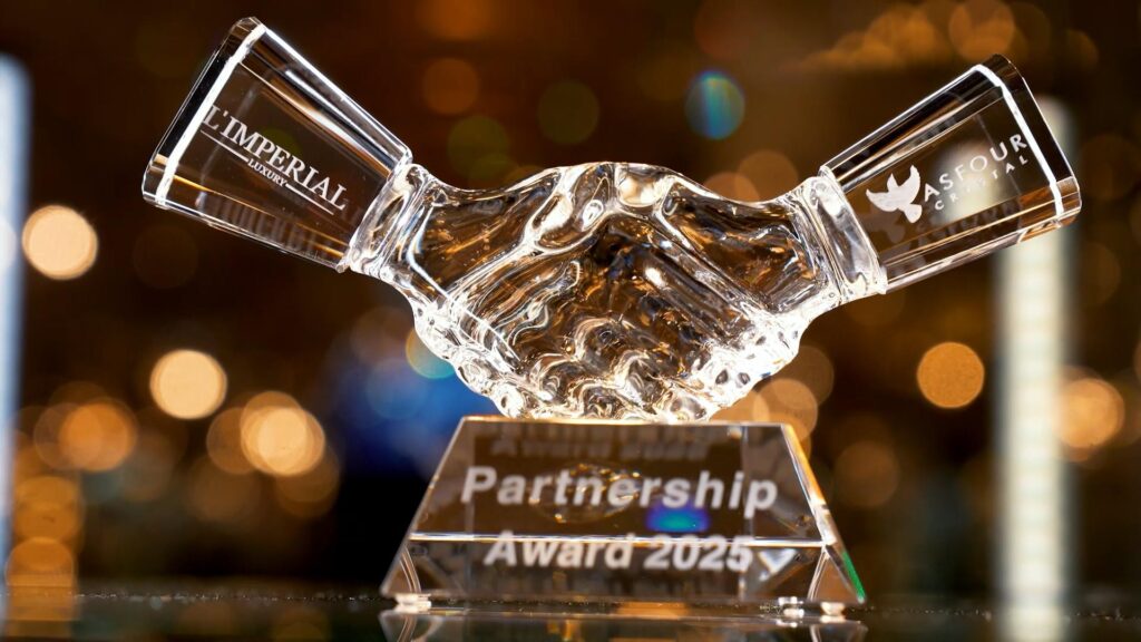 ភ្នំពេញ, កម្ពុជា – L’imperial Home ដែលជាក្រុមហ៊ុនឈានមុខក្នុងការផ្គត់ផ្គង់គ្រឿងសង្ហារឹម និងចង្កៀងប្រណិតនៅកម្ពុជា មានមោទនភាព ប្រកាសពីការទទួលបានពានរង្វាន់ប្រចាំឆ្នាំ Partnership Award ពីក្រុមហ៊ុន Asfour Crystal ដែលជាក្រុមហ៊ុនផ្គត់ផ្គង់គ្រីស្តាល់ គ្រឿងអលង្ការ វត្ថុតាំងលម្អ និងចង្កៀងដ៏ល្បីល្បាញលំដាប់ពិភពលោក មកពីទីក្រុង Cairo ប្រទេសអេហ្ស៊ីប។