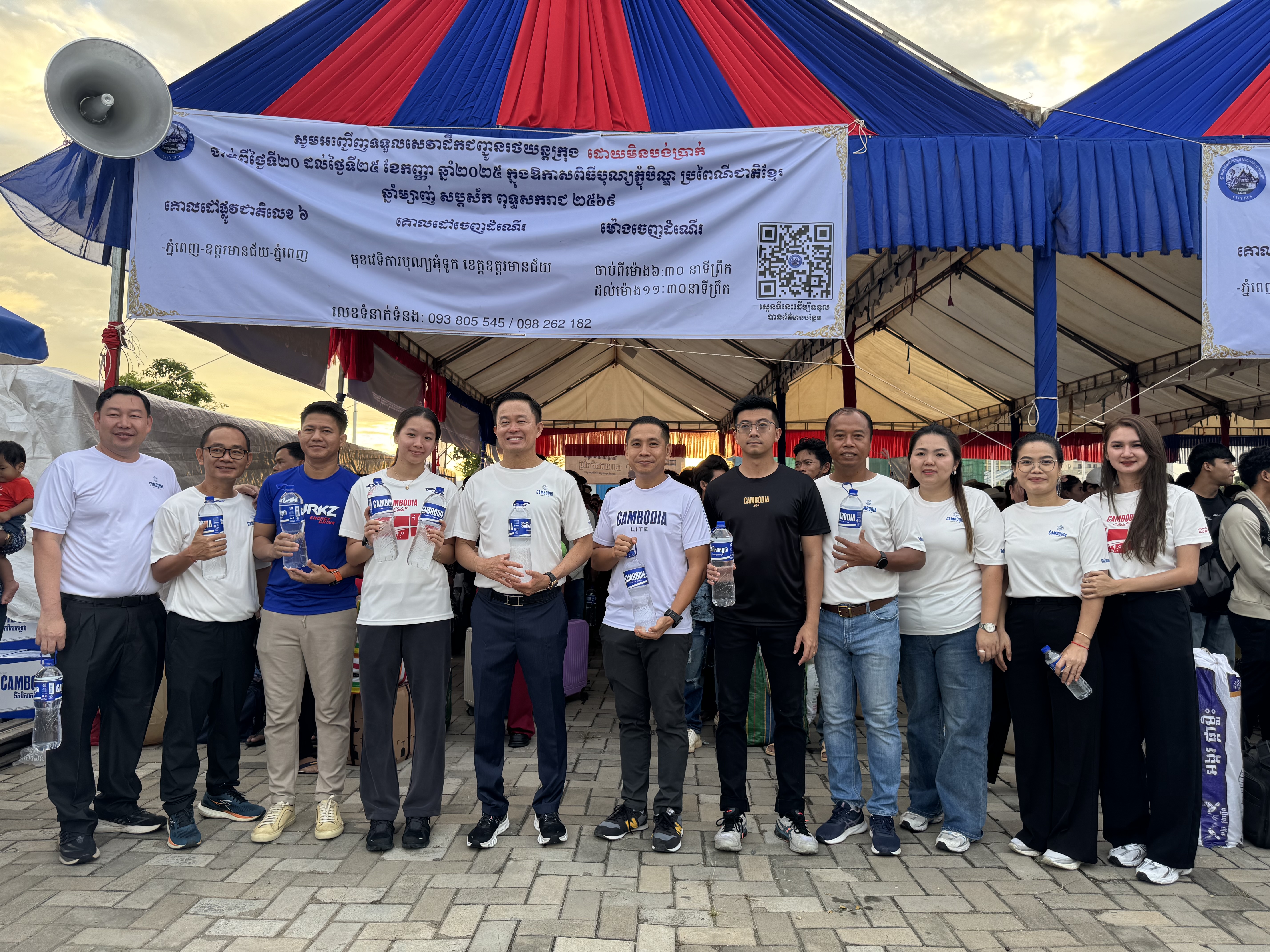យុទ្ធនាការចុះចែកជូនទឹកពិសាកម្ពុជា ចំណុះ 1.5L ពីសំណាក់ថ្នាក់ដឹកនាំកំពូល ជីប ម៉ុង ដែលជាការសហការជាមួយរដ្ឋបាលសាលារាជធានីភ្នំពេញ ឆ្នាំនេះ ពិតជាពិសេសលើសឆ្នាំមុនៗ ព្រោះថា បងប្អូនអ្នកដំណើរ ក្រៅតែពីបានជិះរថយន្តក្រុងក្នុងម៉ាស៊ីនត្រជាក់ ដោយឥតគិតថ្លៃទាំងទៅទាំងមកហើយ ថែមទាំងបានកាន់ទឹកពិសាកម្ពុជាចំណុះ១,៥លីត្រ ម្នាក់១ដប ម្នាក់១ដប គ្រប់គ្នា ដែលនេះពិតជាបង្ហាញនូវ ស្មារតីខ្មែរ ស្រឡាញ់ខ្មែរ ខ្មែររួបរួមគ្នា និងការយកចិត្តទុកដាក់ខ្ពស់របស់ថ្នាក់ដឹកនាំ និងសាលារាជធានីភ្នំពេញ ព្រមទាំងក្រុមហ៊ុនឯកជន ចំពោះបងប្អូនជនរួមជាតិខ្មែរ។