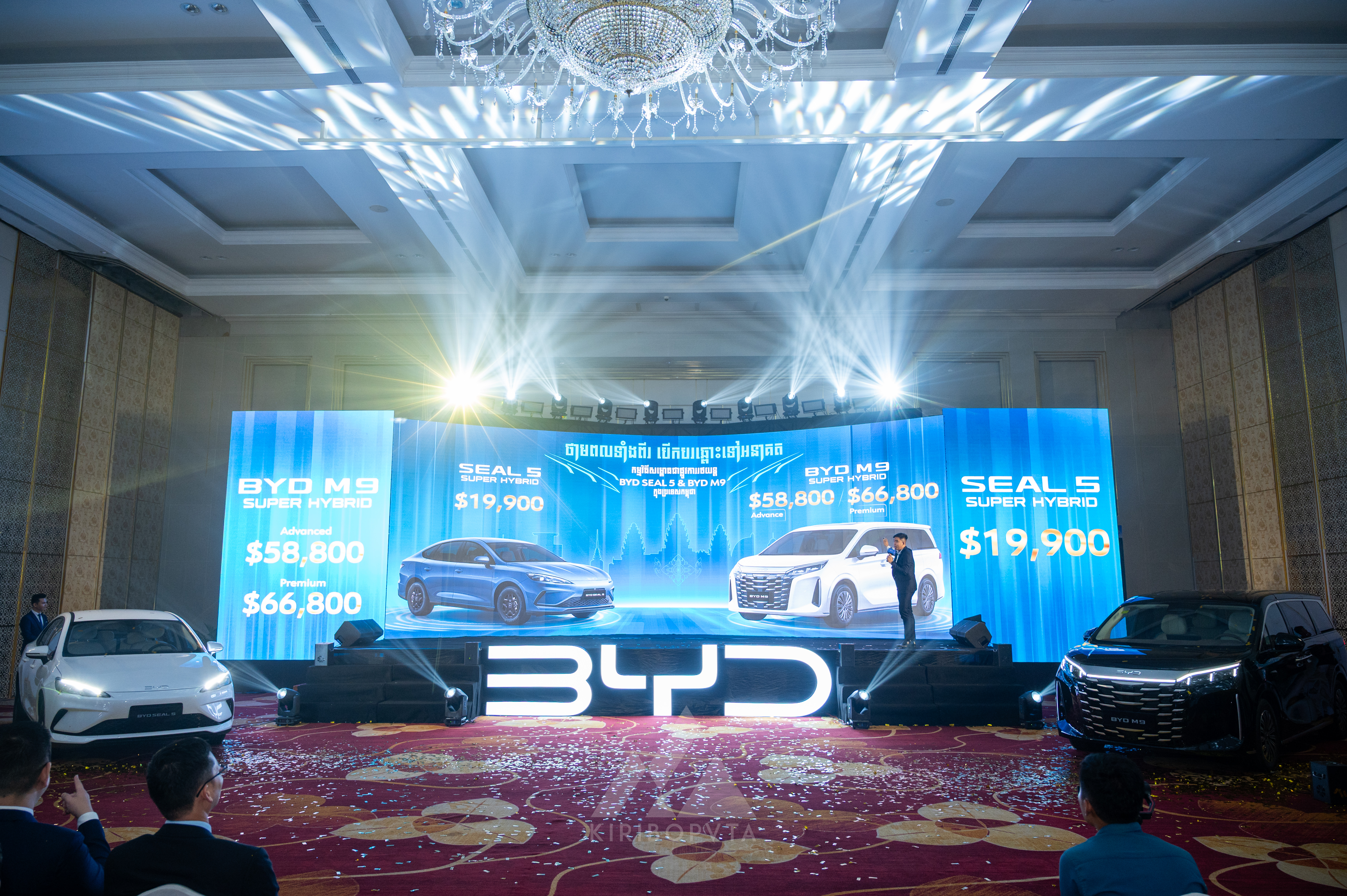 នៅក្នុងពេលរសៀលដែលពោរពេញដោយភាពអធិកអធមនេះ, រថយន្ត BYD Seal 5 Super Hybrid និង BYD M9 បានមកដល់កម្ពុជាជាផ្លូវការហើយ។ ព្រឹត្តិការណ៍សម្ពោធនេះ មិនត្រឹមតែជាពិធីបង្ហាញផលិតផលថ្មីប៉ុណ្ណោះទេ តែជាចំណុចសំខាន់មួយទៀតនៅក្នុងដំណើរការអភិវឌ្ឍន៍យានយន្តថាមពលថ្មីរបស់ក្រុមហ៊ុន BYD នៅកម្ពុជា។