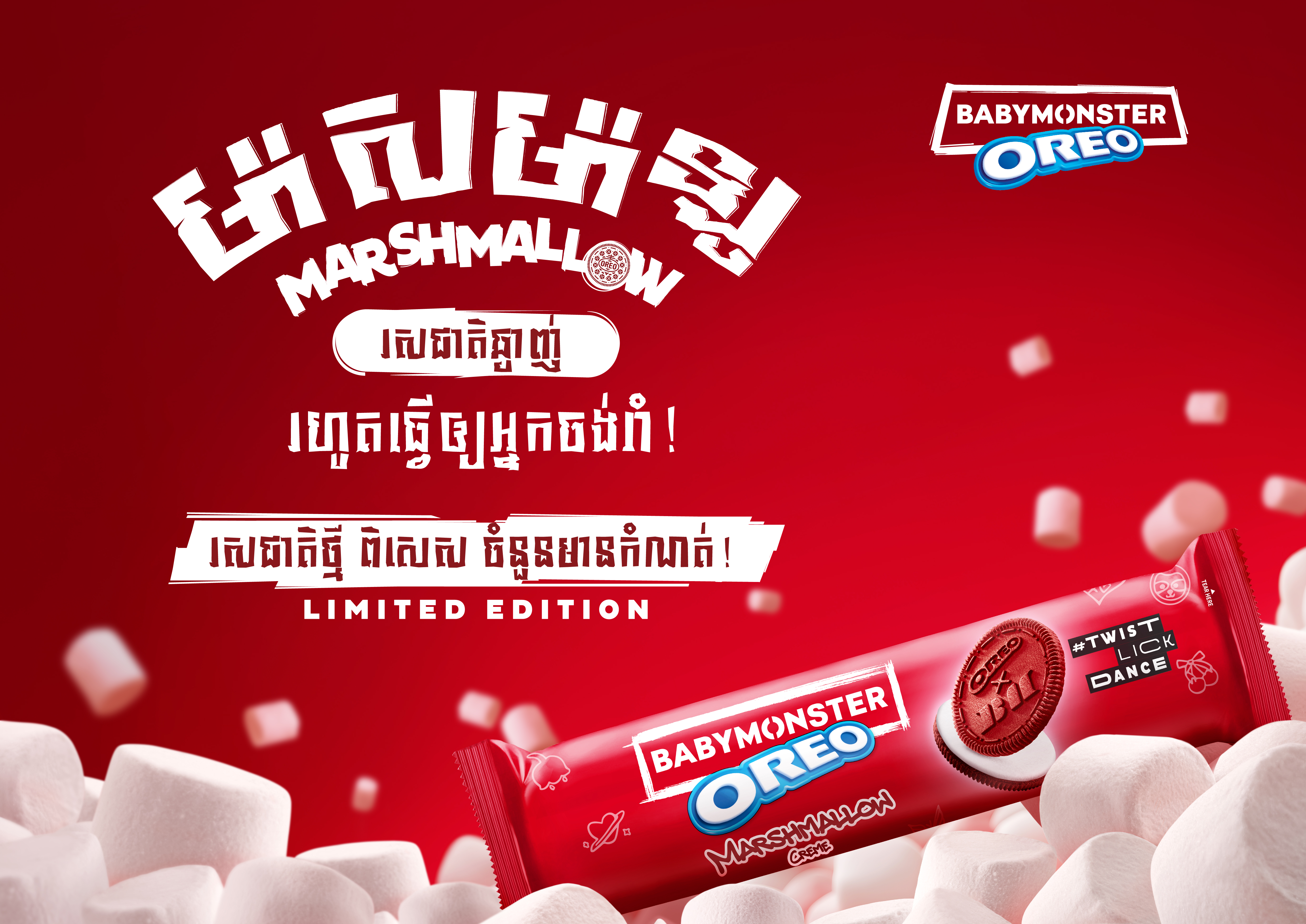 អ្វីដែលកាន់តែគួរឱ្យភ្ញាក់ផ្អើលនោះគឺនំខូគី OREO X BABYMONSTER នឹងមានរសជាតិថ្មីក្រែម Marshmallow ដែលរចនាឡើងដោយសមាជិក BABYMONSTER ទាំងអស់ ដោយលាយបញ្ចូលគ្នានូវរសជាតិ ការច្នៃប្រឌិតជាមួយនឹងការរចនានិមិត្តសញ្ញាផ្ទាល់ខ្លួនសម្រាប់អ្នកគាំទ្រទាំងអស់គ្នា!
