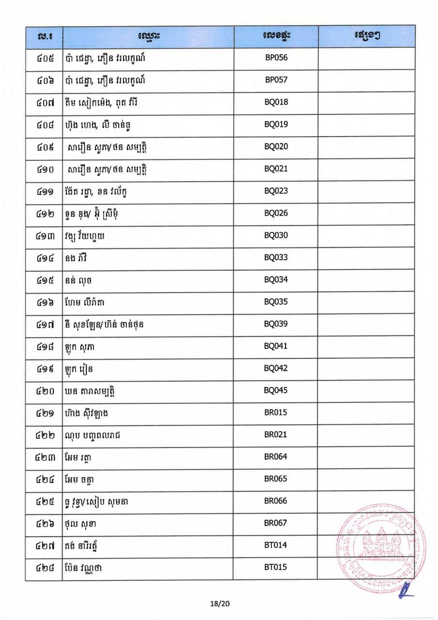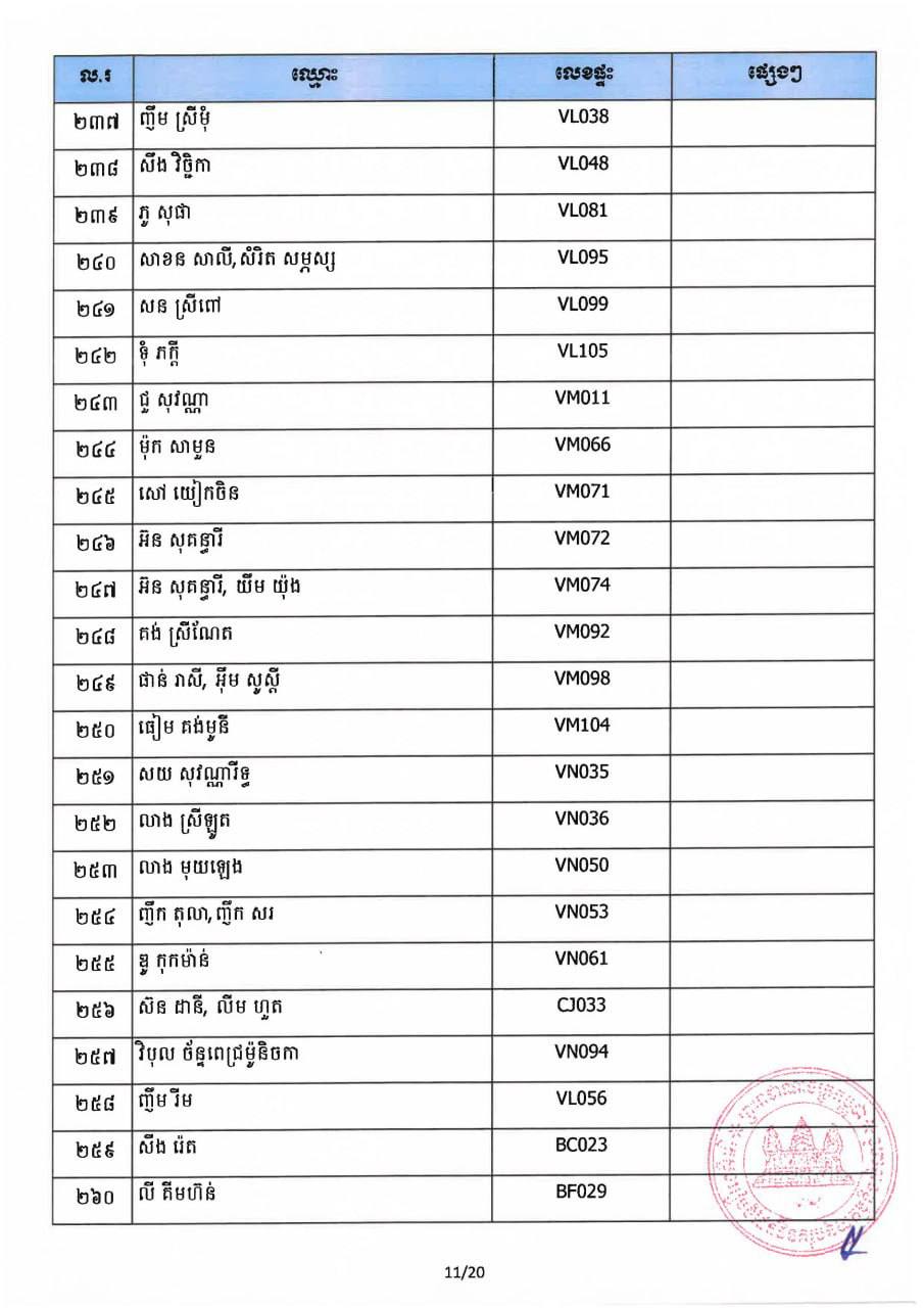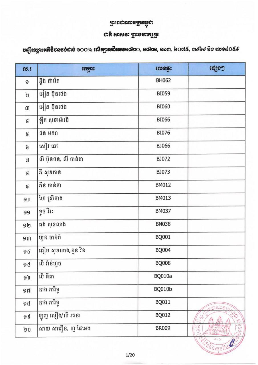 ក្រសួងរៀបចំដែនដី នគរូបនីយកម្ម និងសំណង់ កាលពីថ្ងៃទី០៧ ខែវិច្ឆិកា ឆ្នាំ២០២៥ បានប្រកាសឲ្យអតិថិជនដែលបានបង់ប្រាក់ថ្លៃលក់ទិញដីឡូត៍និង/ឬផ្ទះគ្រប់ចំនួន ១០០% ជាពិសេសអតិថិជន ដែលមានឈ្មោះក្នុងបញ្ជីចំនួន៤៦១ របស់គម្រោងផ្ទះនិងដីឡូត៍ ឡេង ណាវ៉ាត្រា ជ្រែមួយរយ និងគម្រោងផ្លូវជាតិលេខ៦អា មកដាក់ពាក្យស្នើសុំផ្ទេរកម្មសិទ្ធិ។