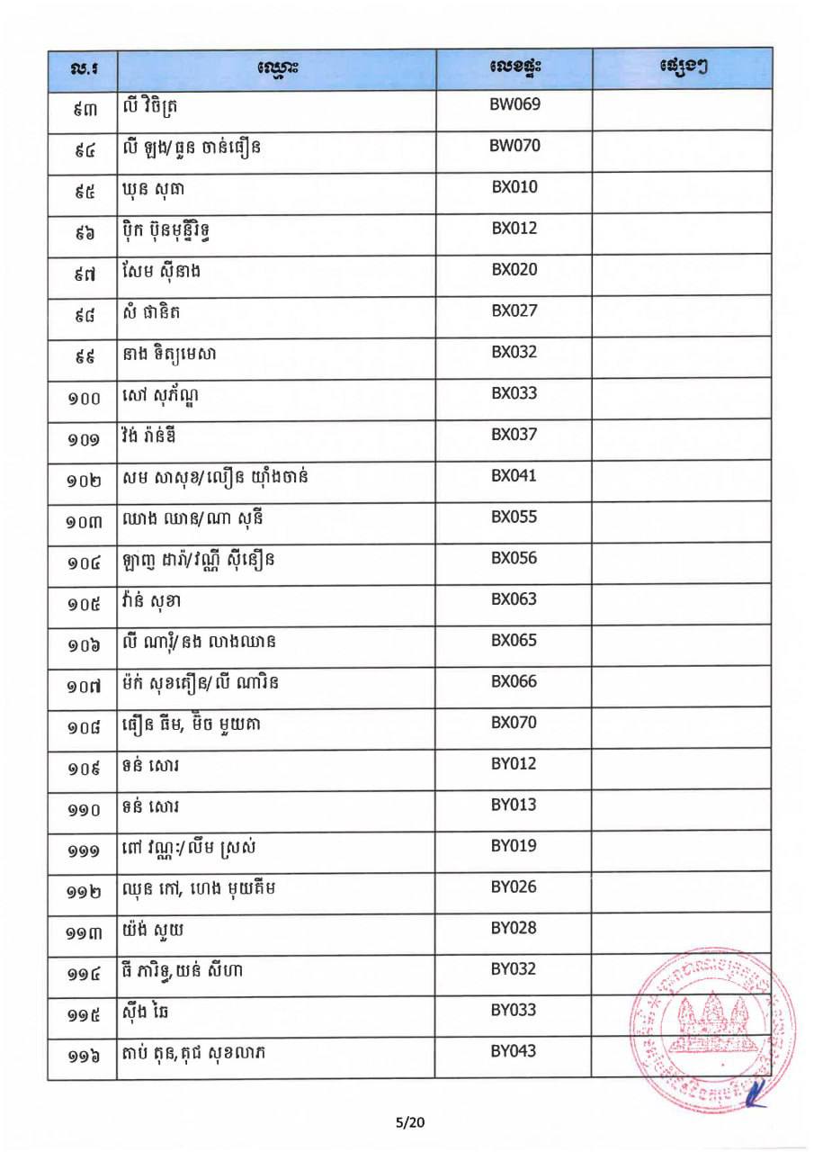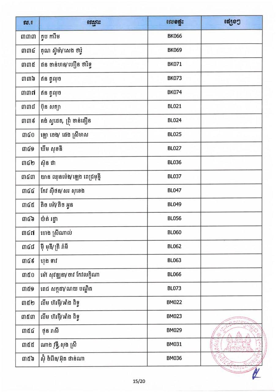 ក្រសួងរៀបចំដែនដី នគរូបនីយកម្ម និងសំណង់ បន្តថា ក្រសួងនឹងបន្តទទួលពាក្យ ស្នើសុំផ្ទេរកម្មសិទ្ធិពីអតិថិជននៅសាលប្រជុំ៣៨៦ ជាន់ទី១ នៃទីស្តីការ ក្រសួងចាប់ពីថ្ងៃទី១២ ដល់ថ្ងៃទី១៣ ខែវិច្ឆិកា ឆ្នាំ២០២៥ នៅរៀងរាល់ម៉ោង ធ្វើការ ។