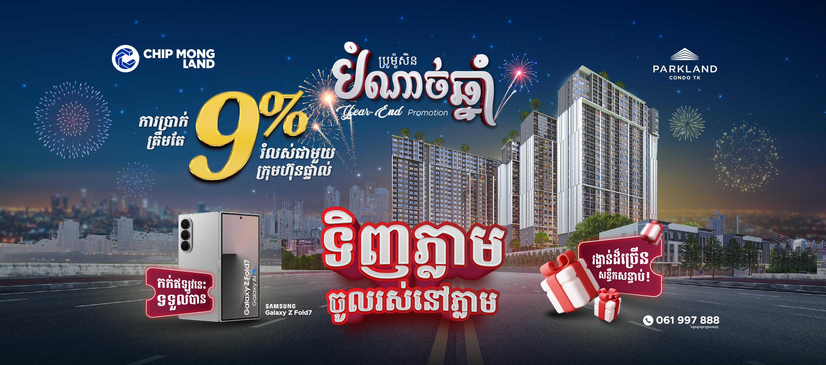 លេងឈុតធំតែម្តង ប្រូម៉ូសិនបំណាច់ឆ្នាំ ពីផាកលែន ខុនដូ ធីខេ របស់ជីប ម៉ុង លែន ផ្តល់ជូនអតិថិជននូវកាដូដ៏សម្បើមរួមមានដូចជា៖