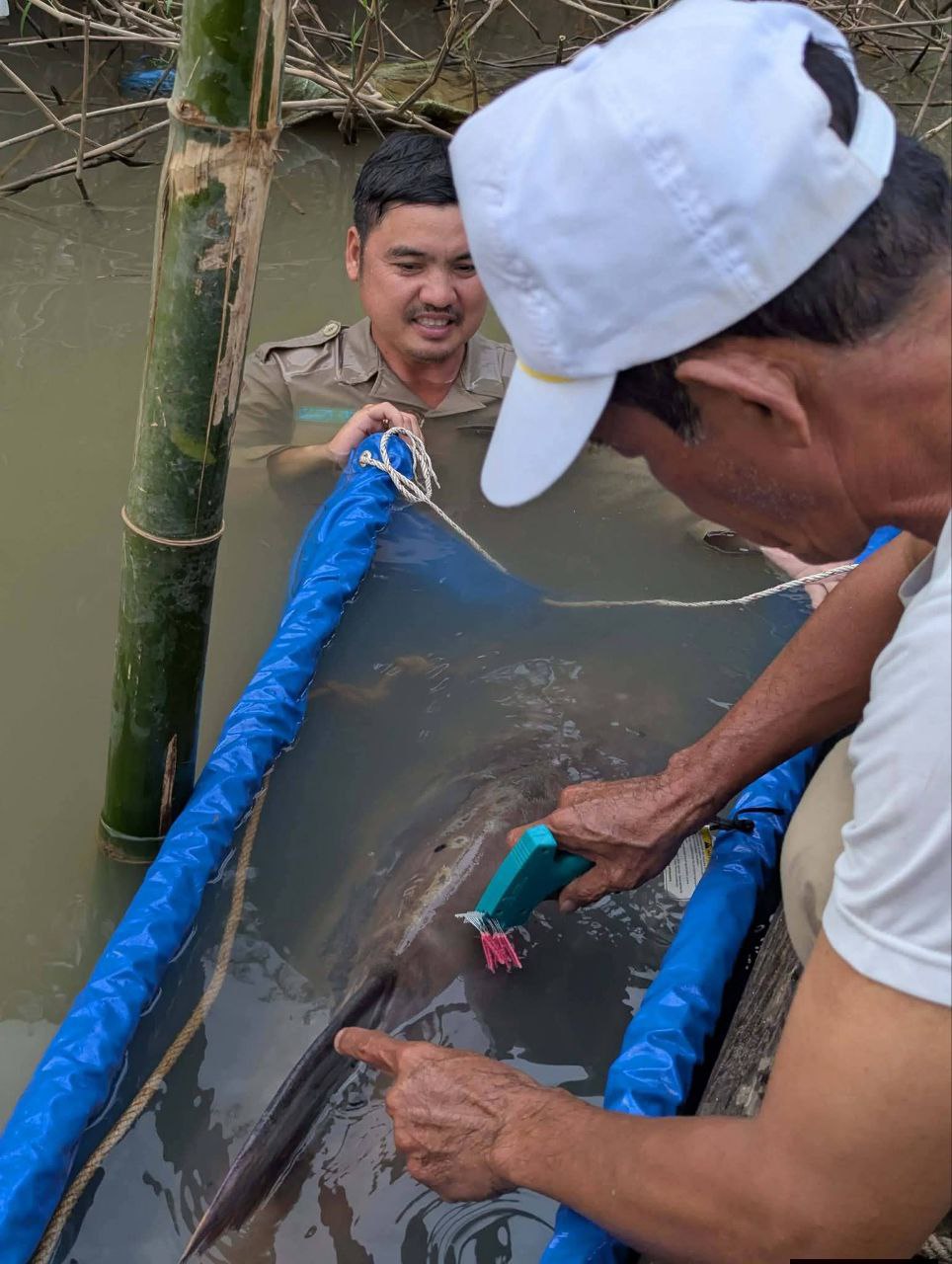 ក្រសួងកសិកម្ម រុក្ខាប្រមាញ់ និងនេសាទ បានបន្ថែមថា កាលពីថ្ងៃទី ២៥ ខែធ្នូ ឆ្នាំ ២០២៥ ខណ្ឌរដ្ឋបាលជលផលកំពង់ចាម សហការ​ជាមួយ អង្គការគម្រោងអច្ឆរិយភាពនៃទន្លេមេគង្គ បាន​ទទួល​ព័ត៌មានពីប្រជានេសាទ នេសាទបានត្រីរាជ ១ក្បាល ដោយ​ប្រើប្រាស់ឧបករណ៍ម៉ាញ់ នៅចំណុចតាមដងទន្លេមេគង្គ ភូមិថ្មីក ឃុំរកាគយ ស្រុកកងមាស ខេត្តកំពង់ចាម។ បើតាមក្រុមការងារបច្ចេកទេសវិទ្យាស្ថានស្រាវជ្រាវ និងអភិវឌ្ឍន៍ជលផល​ទឹកសាប នៃរដ្ឋបាលជលផល ត្រីរាជដែលបានលែងទៅក្នុងធម្មជាតិវិញនេះ មានភេទញី ប្រវែង ២១៥សង់ទីម៉ែត្រ ទម្ងន់សរុប ៩៧គីឡូ​ក្រាម ពាក់ស្លាករដ្ឋបាលជលផល លេខកូដ៥០០ ត្រូវអ្នកនេសាទចាប់បាននៅ​តាមដង​ទន្លេមេគង្គ ក្នុងភូមិថ្មីក ឃុំរកាគយ ស្រុកកងមាស ខេត្តកំពង់​ចាម។ ក្រោយពីកំណត់អត្តសញ្ញាណរួច ក្រុមការងារ និងមន្ត្រី​ជំនាញ​​ជល​ផល បានលែងត្រីរាជនេះ ចូលក្នុងទន្លេមេគង្គវិញ៕