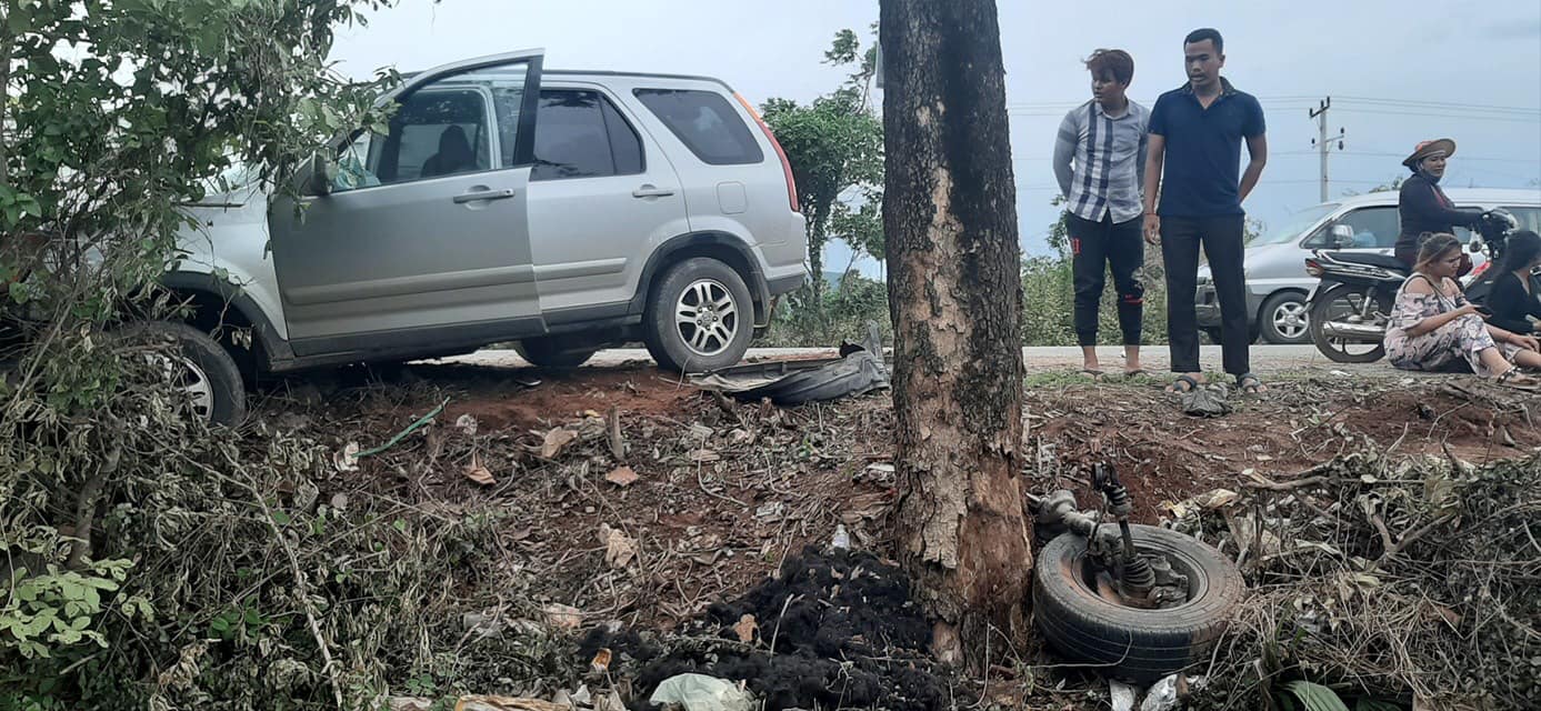 ពេលត្រឡប់មកវិញដល់ចំណុចគីឡូលេខ៧១ និង៧០ ផ្លូវជាតិលេខ៤ ប្រហែលម៉ោង៥ល្ងាច ក៏បានពើតនឹងកុងតឺនឺ ហើយលោកក៏គេច និងជាន់ហ្វ្រាំង ក៏បានទៅបុកដើមស្តៅដ៏ធំមួយបណ្តាលអោយខ្ទេចឡានទាំងស្រុង ដាច់កង់ បាក់តួ បាក់ដំបូល និងអ្វីផ្សេងៗខ្ទេច។ ចំណែកលោកនិងមិត្តភក្តិរួមដំណើរមិនមានរបួសទេ តែរបស់របរបានបាត់អស់។ ក្នុងនោះជនរងគ្រោះជាម្ចាស់រថយន្តក៏បានអំពាវសូមបងប្អូនសប្បុរសជន ឲ្យជួយជាថវិកាក្នុងការជួសជុលរថយន្ត និងក្នុងការចំណាយព្យាបាលរបួសផង៕